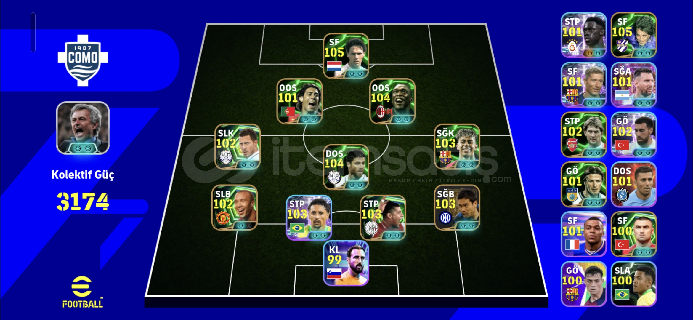 TEK BAĞ HESAP103 NAGATOMO103 YAMAL104 SEEDORF104 XABİ ALONSOVE DAHASIBOMBACI BURAK YILMAZ3 TANE MENEJER ÇİFT GÜÇLENDİRİCİLİ
