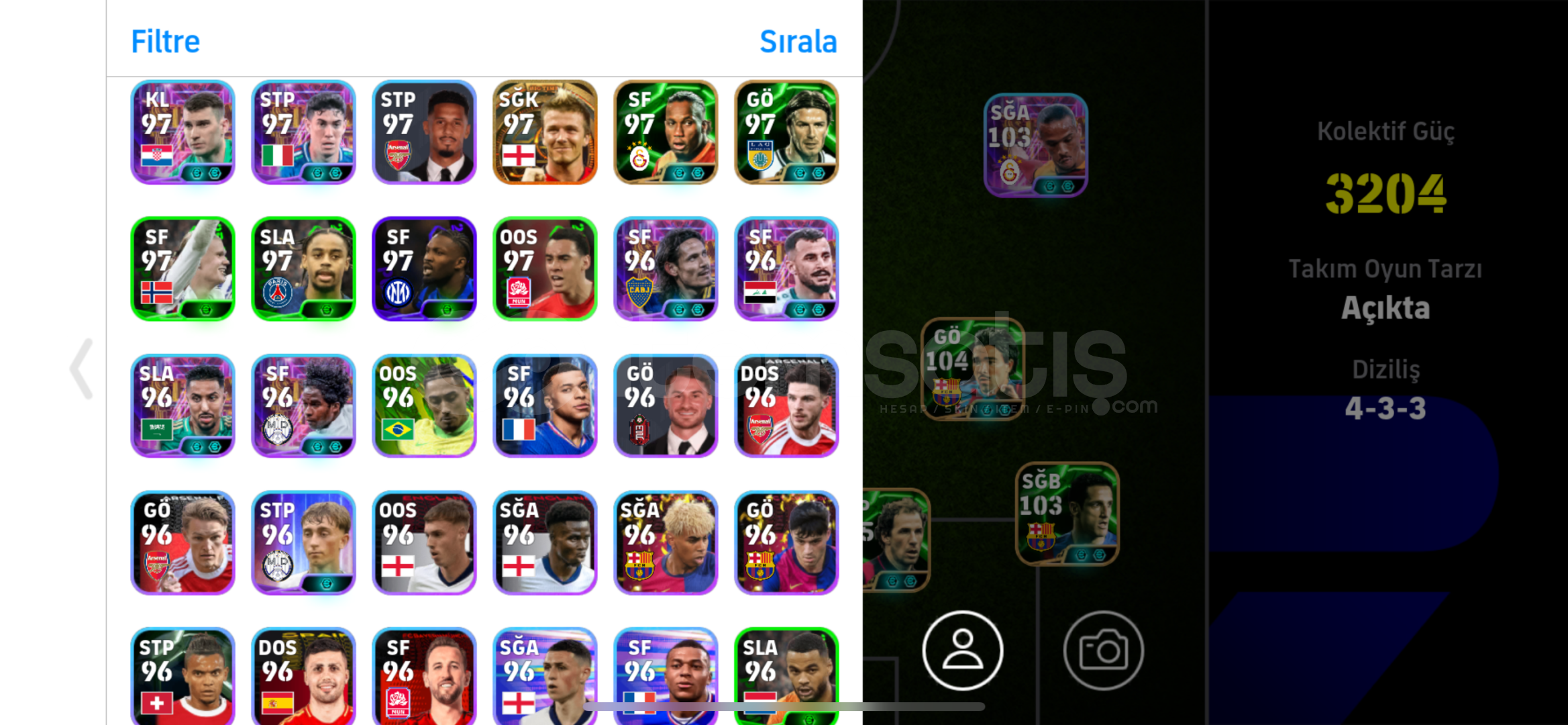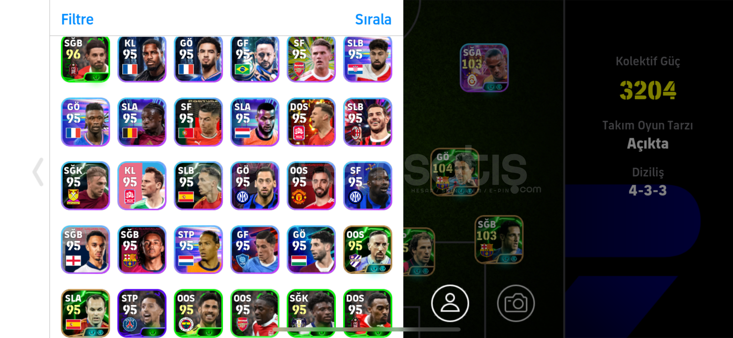3500 mc var hesapta 107 osimhen 104 hoeness 103 sane 104 deco 104 vitinha ve fazlası