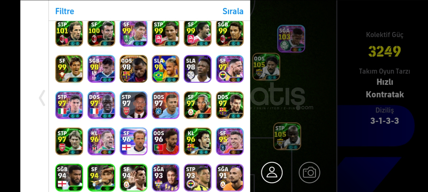 🎉 İlanını gören herkese merhbalar🎉💪 3255 MAX Kolektif Güç✅ Eksi MC yok 📱 Game Center bağı silinmiştir🔥 5 Bombacı:💣 105 Del Piero💣 104 Bergkamp💣 104 Villa💣 103 Estevão💣 101 Rafa⚡ Dahası: 🔥 Efsane rezervi, Süper Lig Epic’leri ve ekstra sağlam Epic’ler!🐐 Oyunun en sağlam forveti:👑 105 Shevchenko...