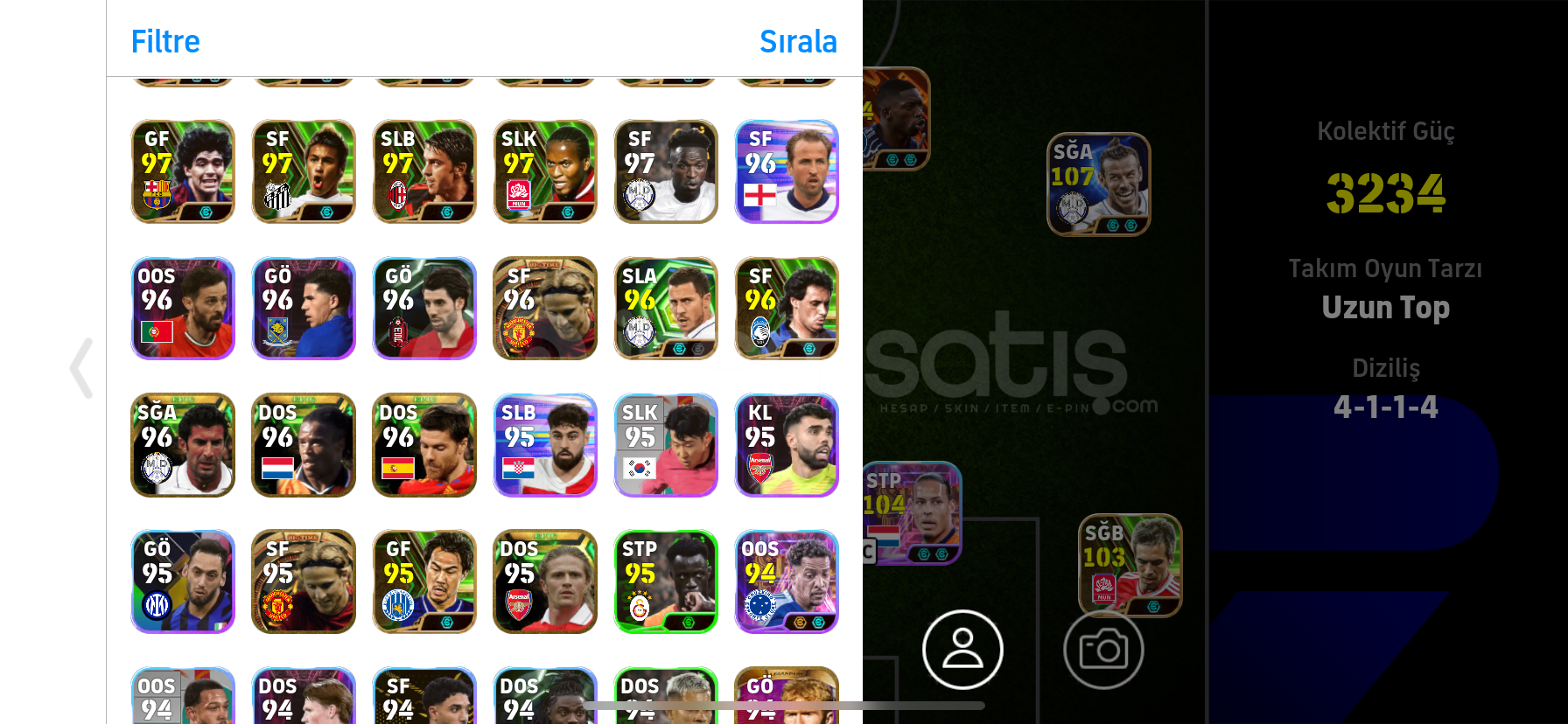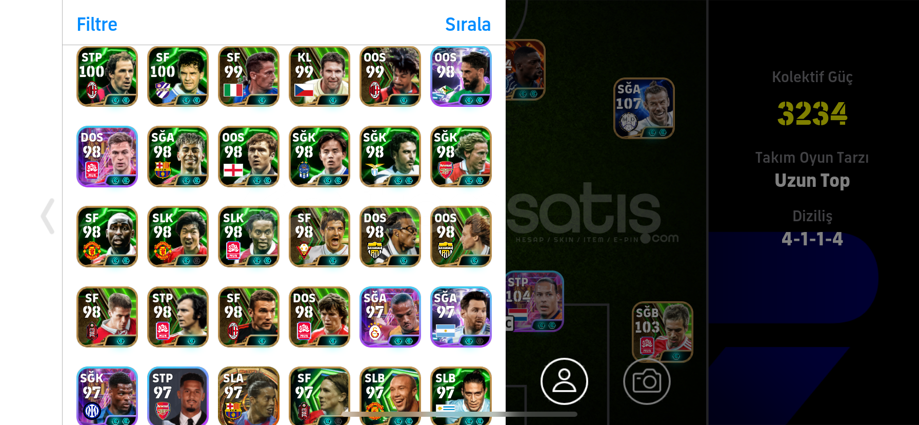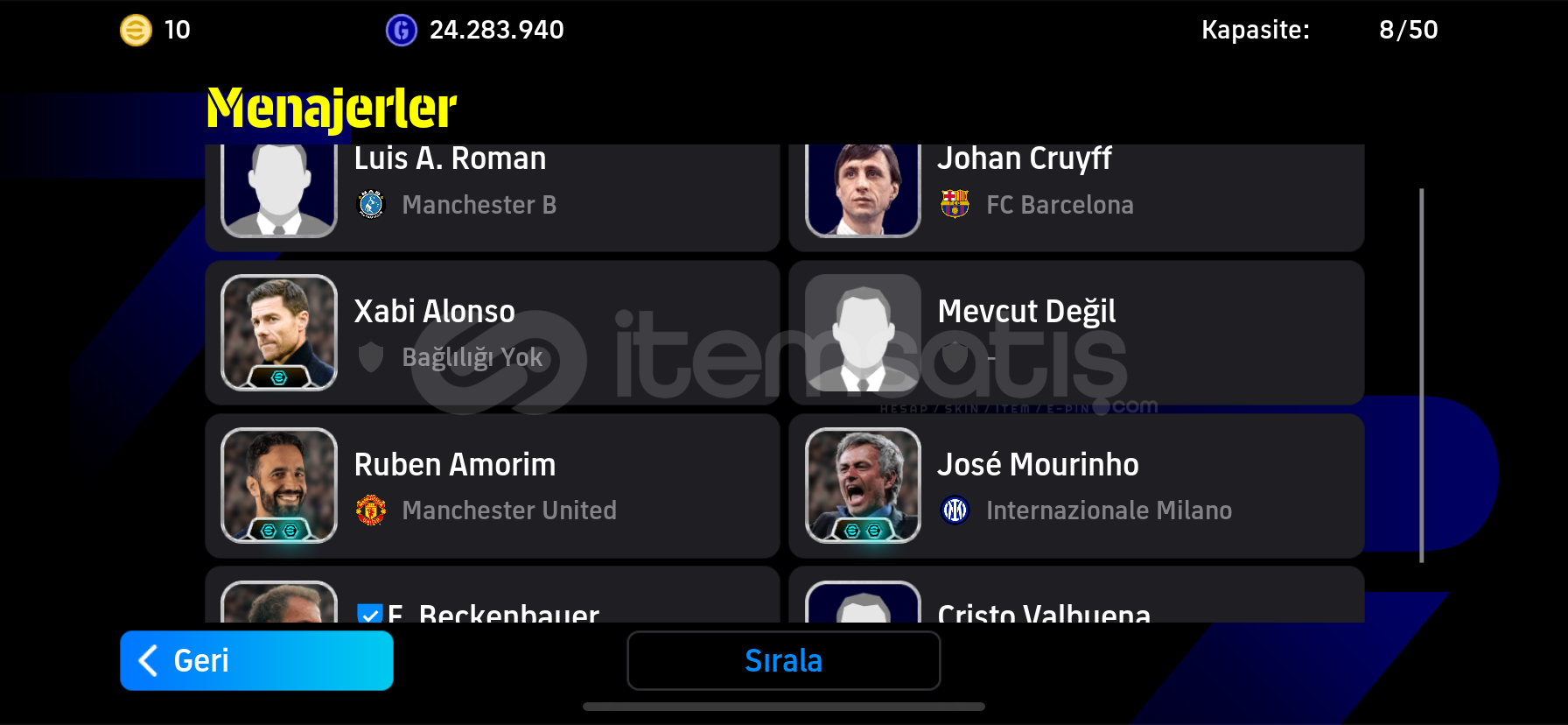 İOS andorid tek bağ eksi mc yok 40 adet paralı epic 5 adet bombacı var nadir big time oyuncular var teknik direktör morinho cryuff beckenbauer var