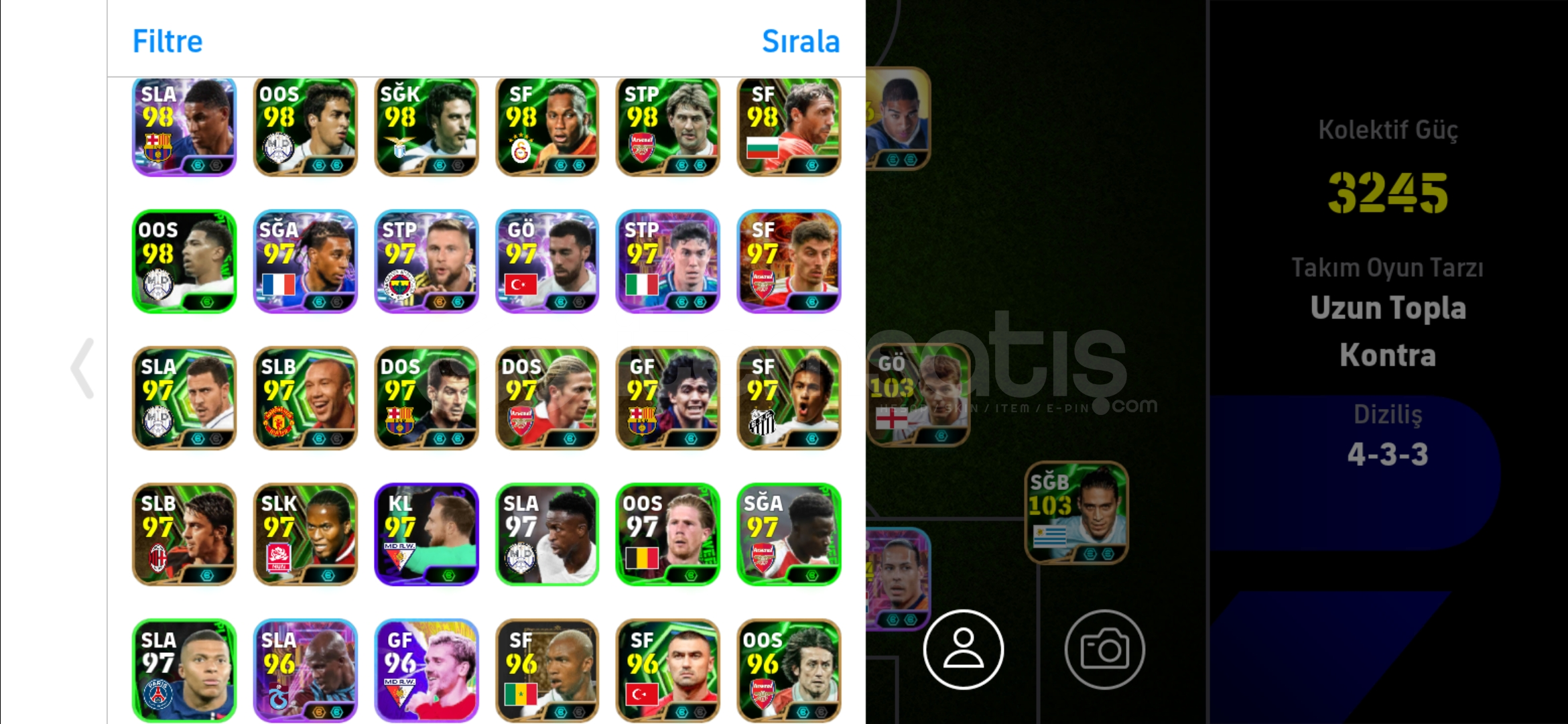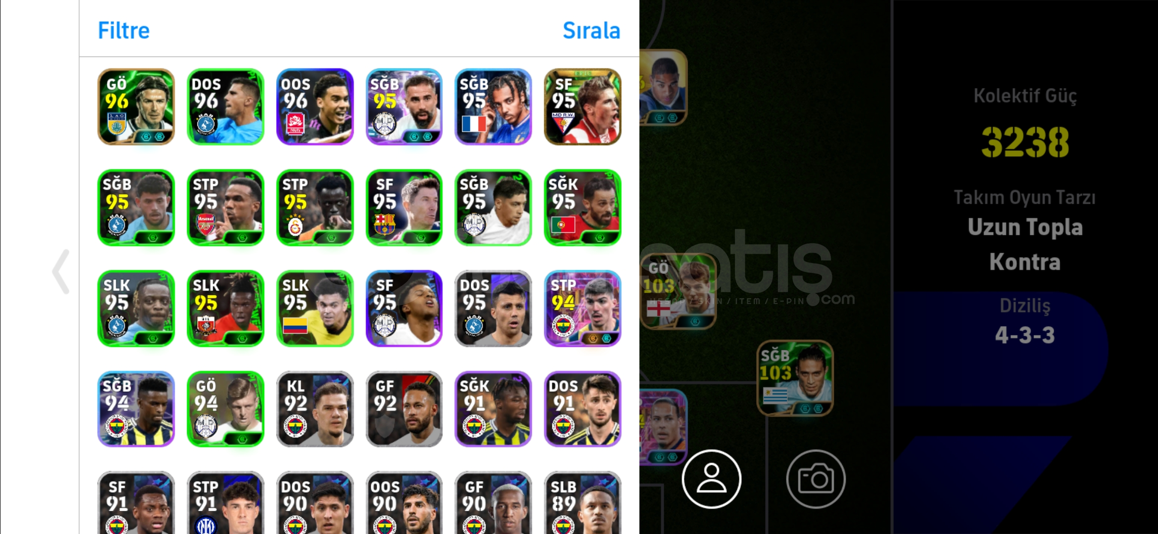 Arkadaşlar hesap göründüğü gibidir Raul Kerem ve Vieira nın güçlendiricileri yanlış olduğu için 3246 kgdır Tek bağdır 14k görmüş hesaptır. ÇOK ŞANSLIDIR PLATİNİ MESSİ RAUL VIEIRA ADRIANO 500 MCYE ÇIKMIŞ OYUNCULARDIR Alacak arkadaşa şimdiden hayırlı olsun PAZARLIK olur çekinmeden yazınız.