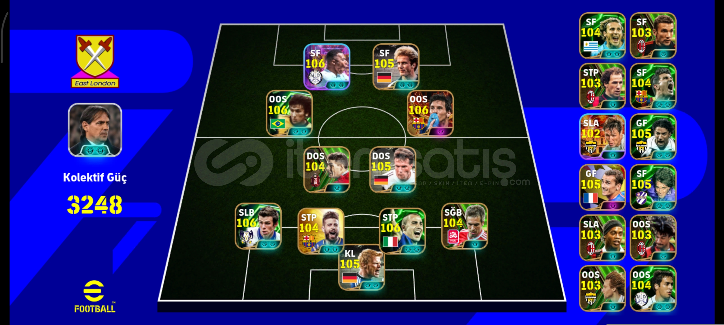 4 bombacılı oyunun en iyi bombacıları💣*Alessandro delpiero*Federico chezsa*David villa*Kensuke nagaiOyunun en iyi SF leri😁*Kylian mbappe*K. Heinz Rumenige*Andriy shevchenkoHesapta yok yok yazamıyorum MalesefŞuan kg 3248 ancak çoğu oyuncu ful seviyesinden alttaOrta kafaAra pas la SF Leri aşırı iyi kaçarHer türlü oyun sitiline uygun hesapHesabın şuanki hali son fotoda 👌