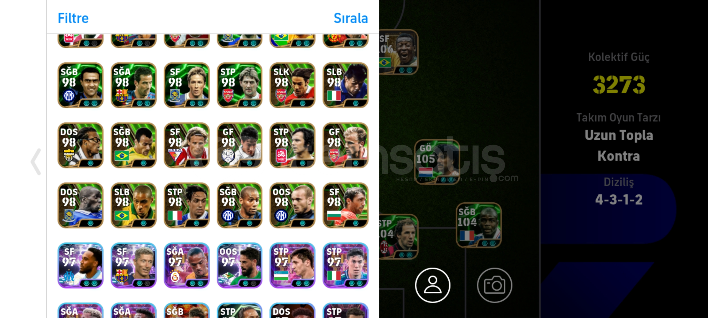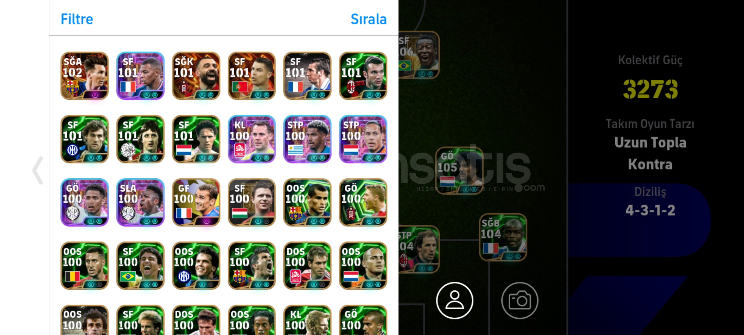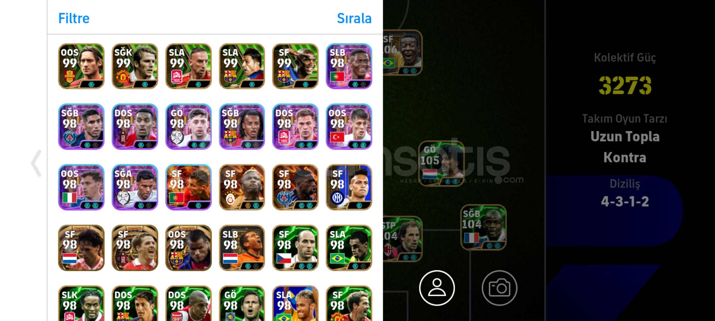 Hesapta bütün meta kartlar vardır hemen hemen. Bir ton epic show time kart vardır 5 senedir kullanıyorum en az 100k tl harxamışımdır Schevshenko Rummeniga Bombacı mbappe Show time van dijk gibi kartlar var çok rahat sıralamaya kasabilirsiniz.