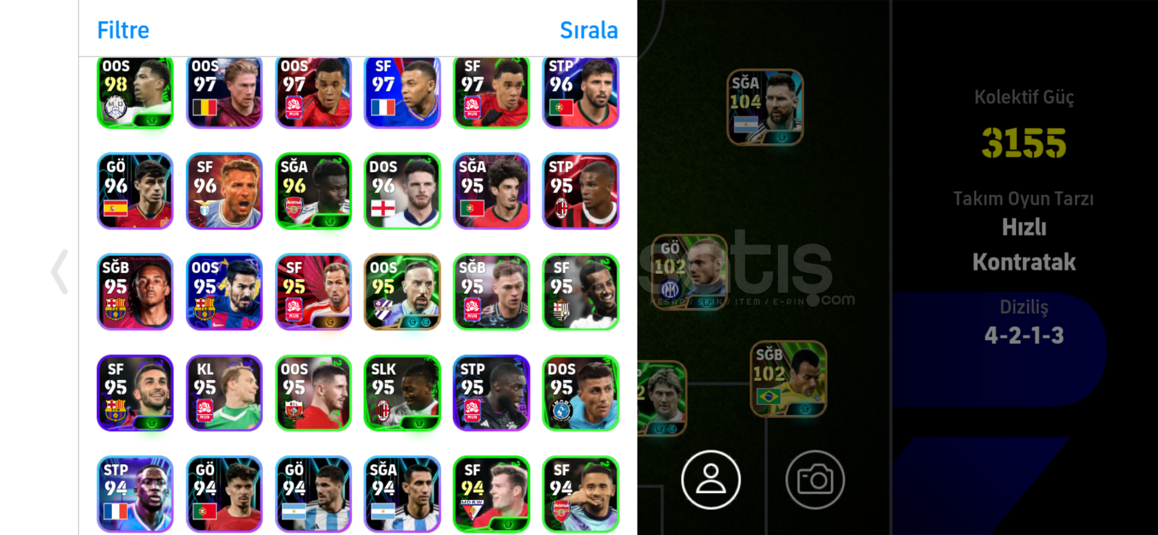 Uygun hesap 600tl 3155kg pazarlık vardır102 ronaldo104messi101griezmaniyi kadro uygun fiyatlıdırtek bağdır