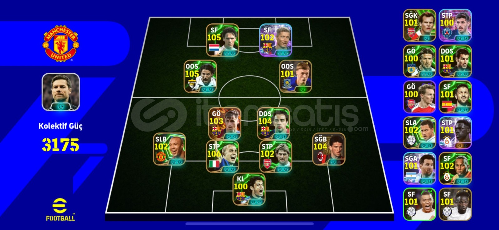 Oyuna yeni gelen 105 PANUCCİ VARDIR.105 DEL PİERO105 VAN BASTEN105 PANUCCİ106 CANAVARO104SANCHEZ103 PEDRİ104 XAVİ