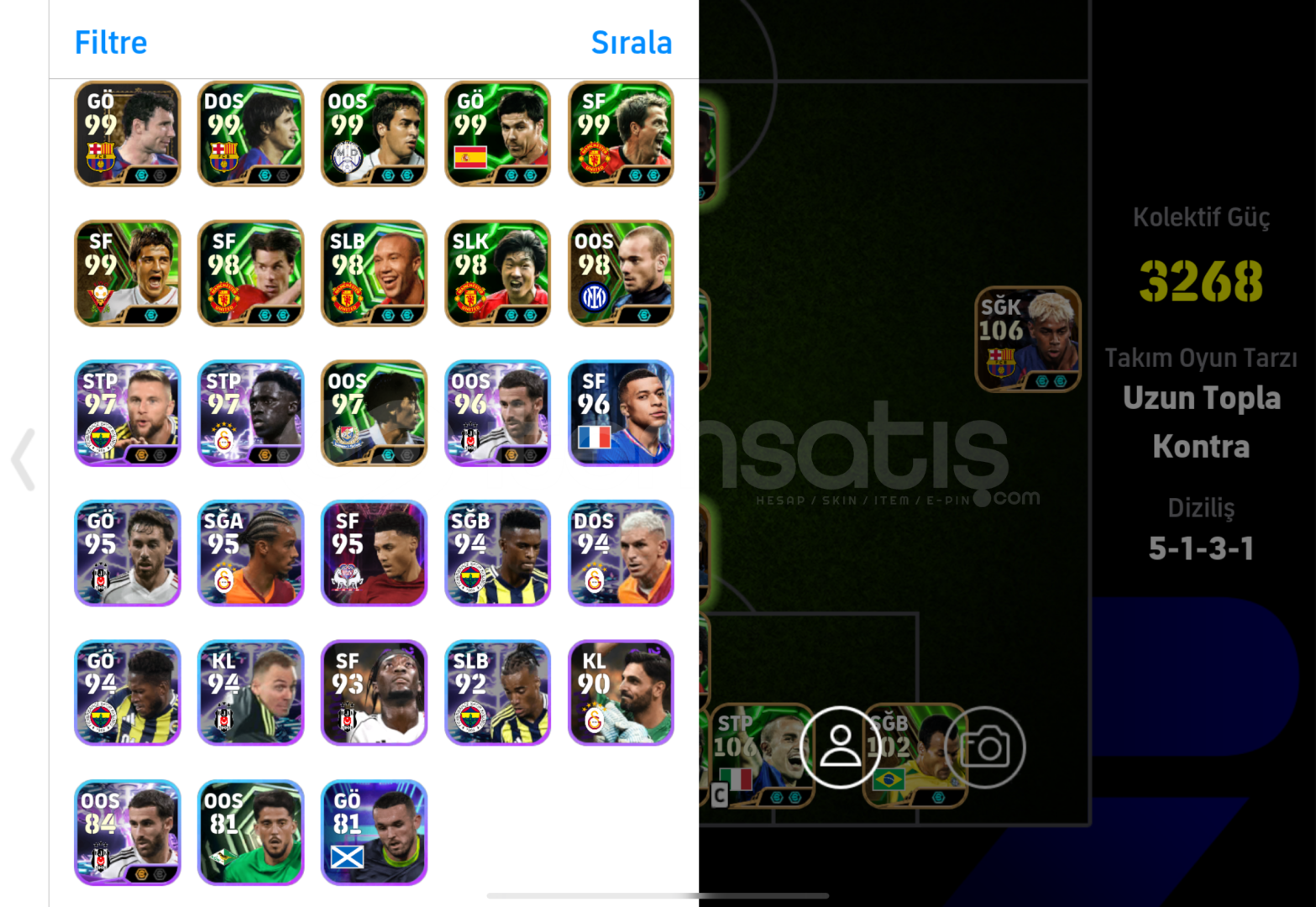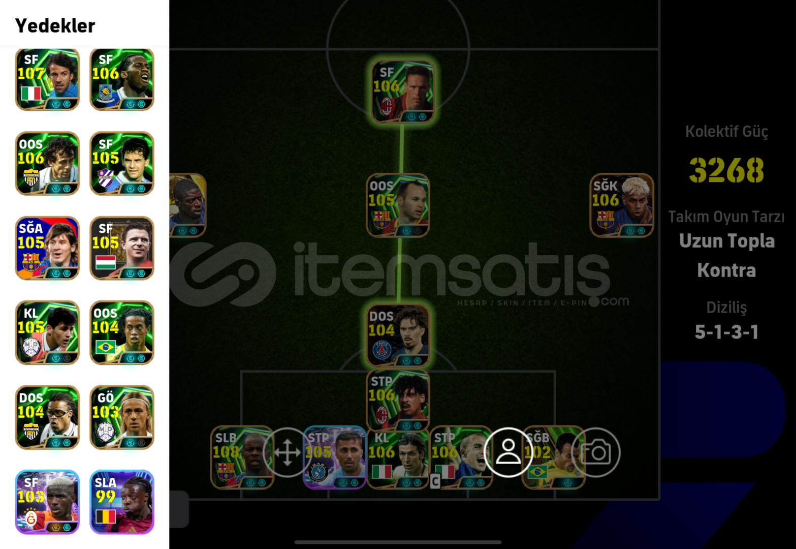 106 DROGBA106 DEMBELE105 YAMAL104 RONALDİNHO105 RODRİ106 RİJKAARD102 SİLVESTRE102 CAFU108 THURAM106 CANNAVARO105 CASİLLAS107 DEL PİERO106 PLATİNİ106 VAN BASTEN106 BUFFON105 BAGGİO105 PUSKAS105 MESSİ104 DAVİDS104 VİTİNHA104 OWEN104 EDMİLSON104 RAUL103 VAN BOMMEL103 XABİ ALONSO104 DAVİD VİLLA103 VAN NİSTELROOİJ102 PARK Jİ-SUNG102 SNEİJDER105 Sanchez102 SHUNSUKE NAKAMURA2x 105 RAFA SILVA102 MBAP...