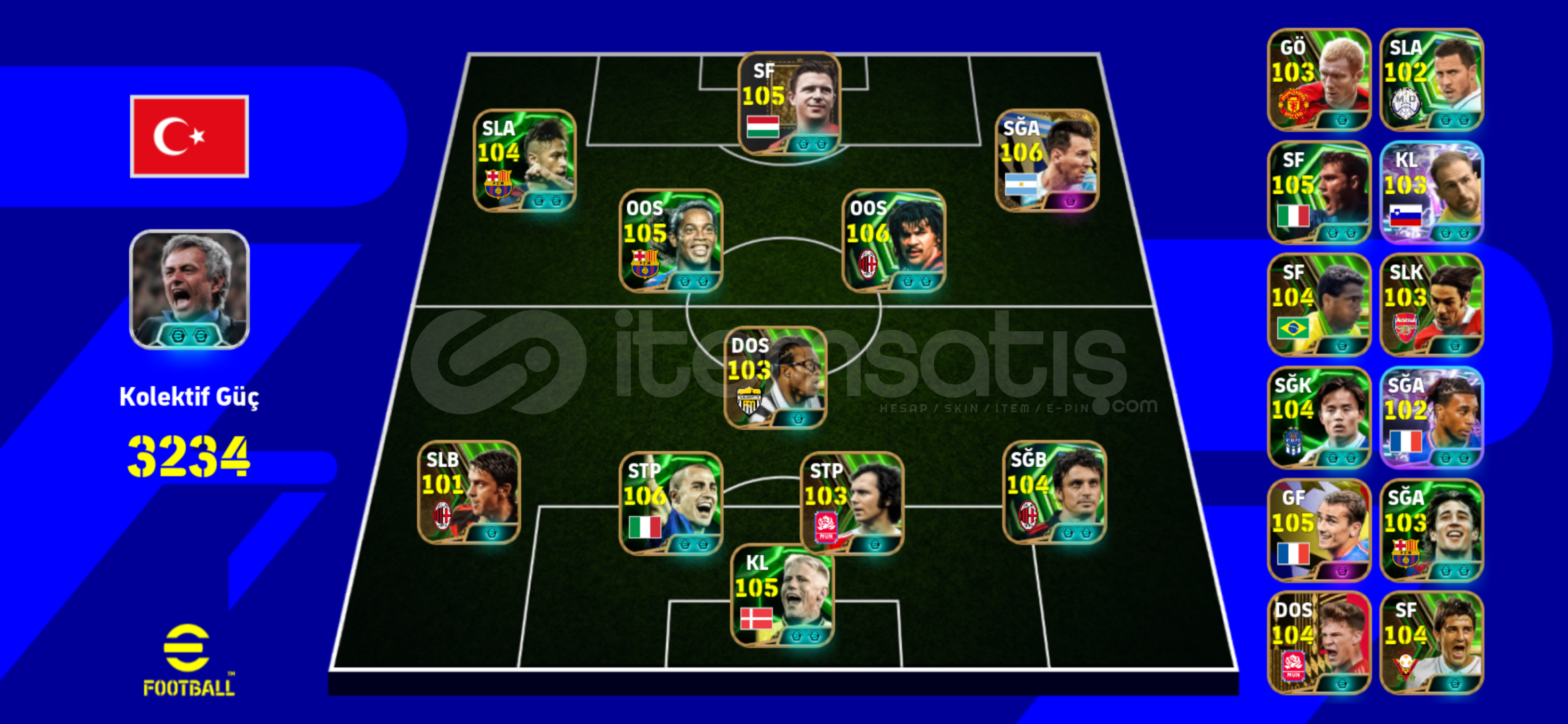 🔹 Kadro fotoğraflarda görüldüğü gibidir🔹 Güçlü yedekler + yüksek reytingli oyuncular🔹 Toplam 550 oyuncu var🔹 Sadece KONAMI İD bağlı hesap