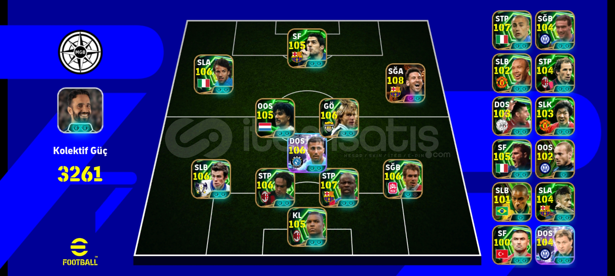 4 bombacı Burak Yılmaz la beraber Messi delpiero vieri Güçlendiricilerle 3265 olur 10400 my club parası duruyor hesap sorunsuz tek bağ