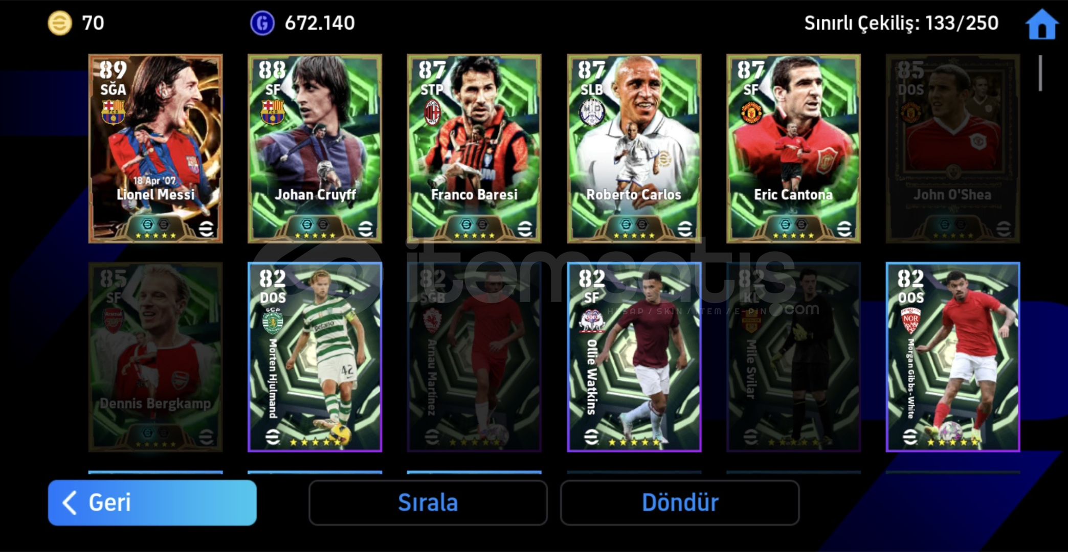 -Bütün Kartlar Özel Basımdır-110 Messi Paketine 127 Açış Yapılmıştır Siz Aldığınızda Çıkma Oranı Çok Yüksek-Tam MAİNLEMELİK Ömürlük Hesap-Direk Mailinize Geçirilir-Güvenlikle Alakalı Sıkıntı Asla Olmaz-Temiz Ve Tek Bağdır-Rezevlerdede için doludur-ZATEN HESABA MESSİ İÇİN 3799TL YATIRILMIŞ...
