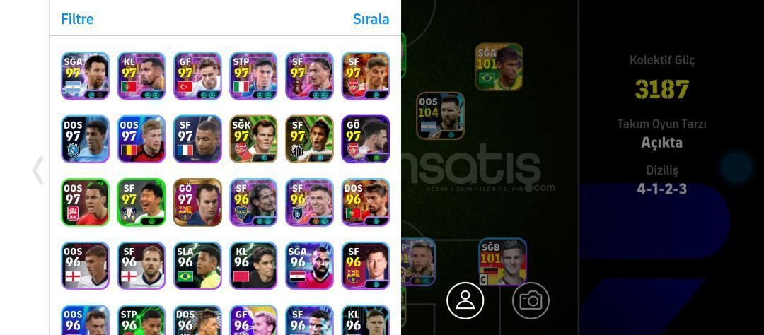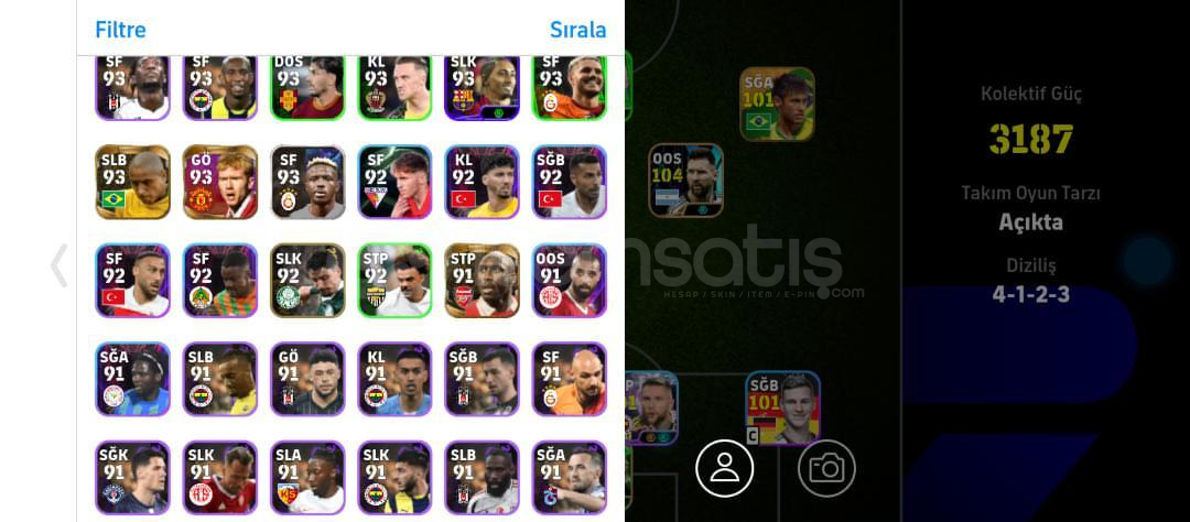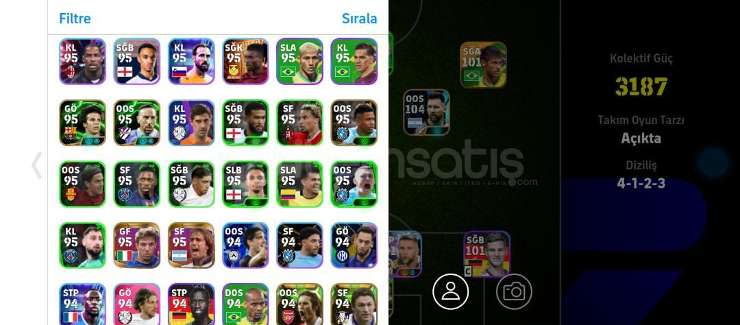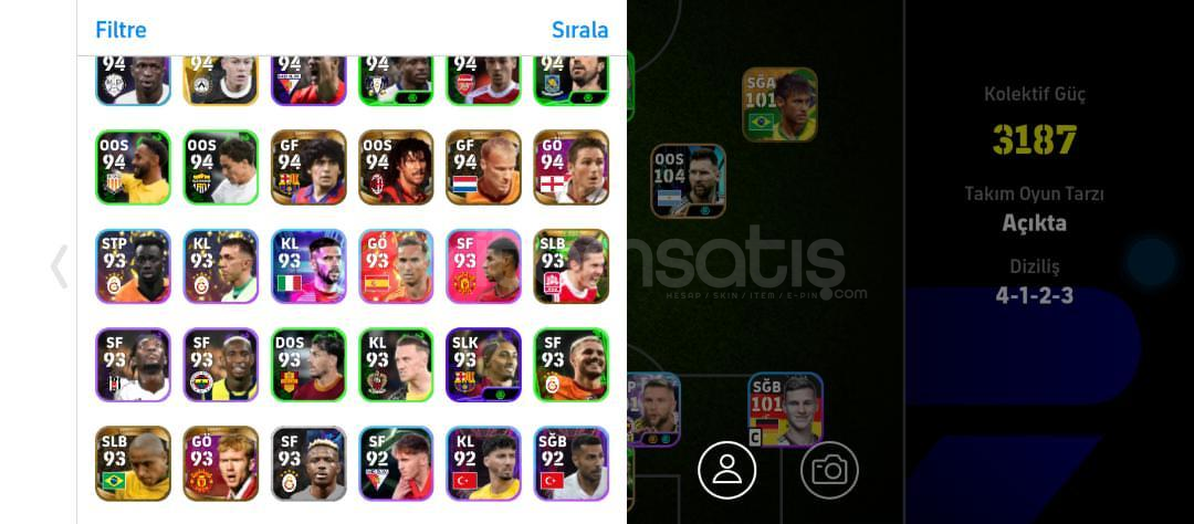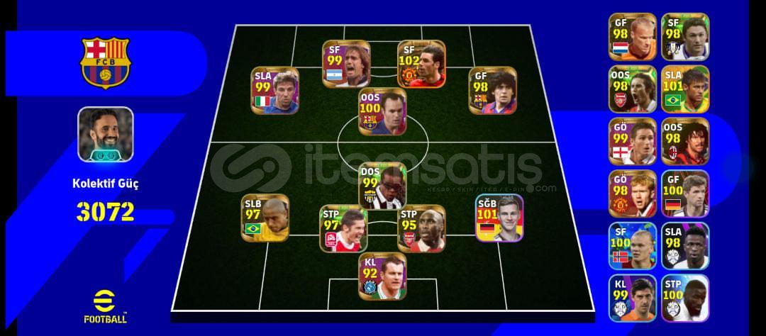 HESAPTA 2021 DEN KALMA OYUNCULAR VARDIR ÇOK NADİR BİR HESAPTIR BREZİLYA NEYMAR 101104 CUNHA (BOMBACI) 104101 KİMMİCH 104 MESSİ99 EDGAR DAVİDS97 LİZARAZU99 DEL PİERO 100 İNİESTA 92 GİVEN98 MARADONA99 EDERSON 99 RİCARLİSON97 FABİNHO