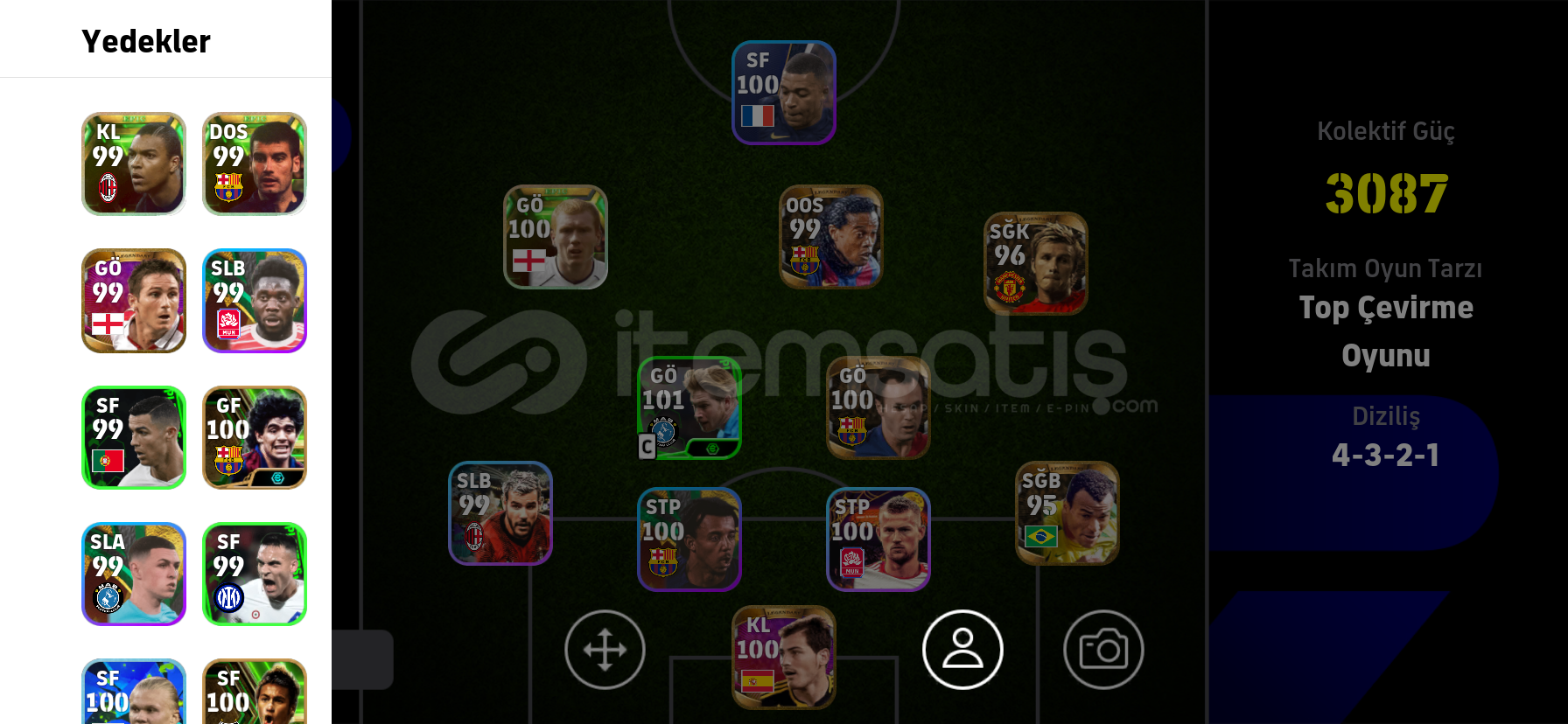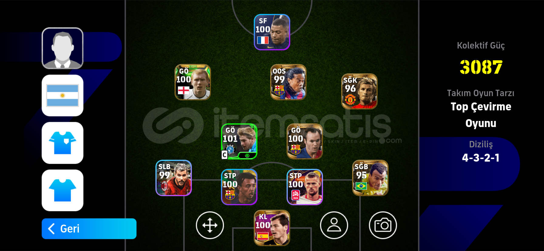 100 Scholes99 Lampard99 Ronaldinho95 Cafu 96 Beckham100 iniesta100 casillas100 maradona99 Guardiola99 didave daha fazlası...HESAP TEK BAĞDIR SORUNSUZDUR