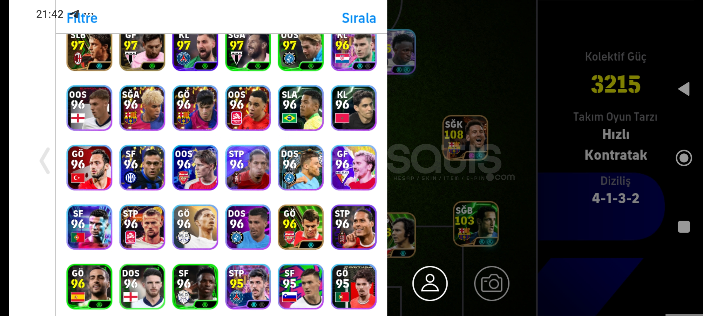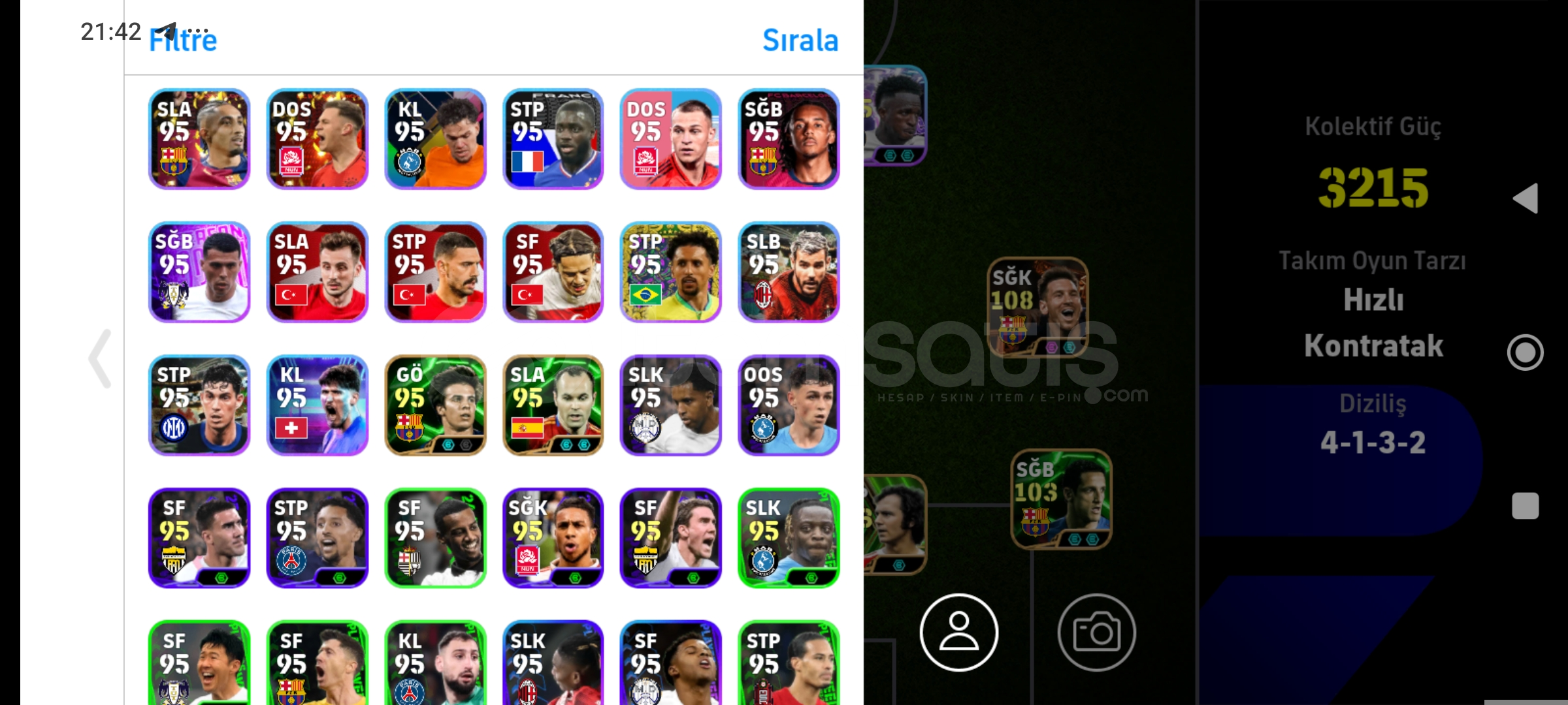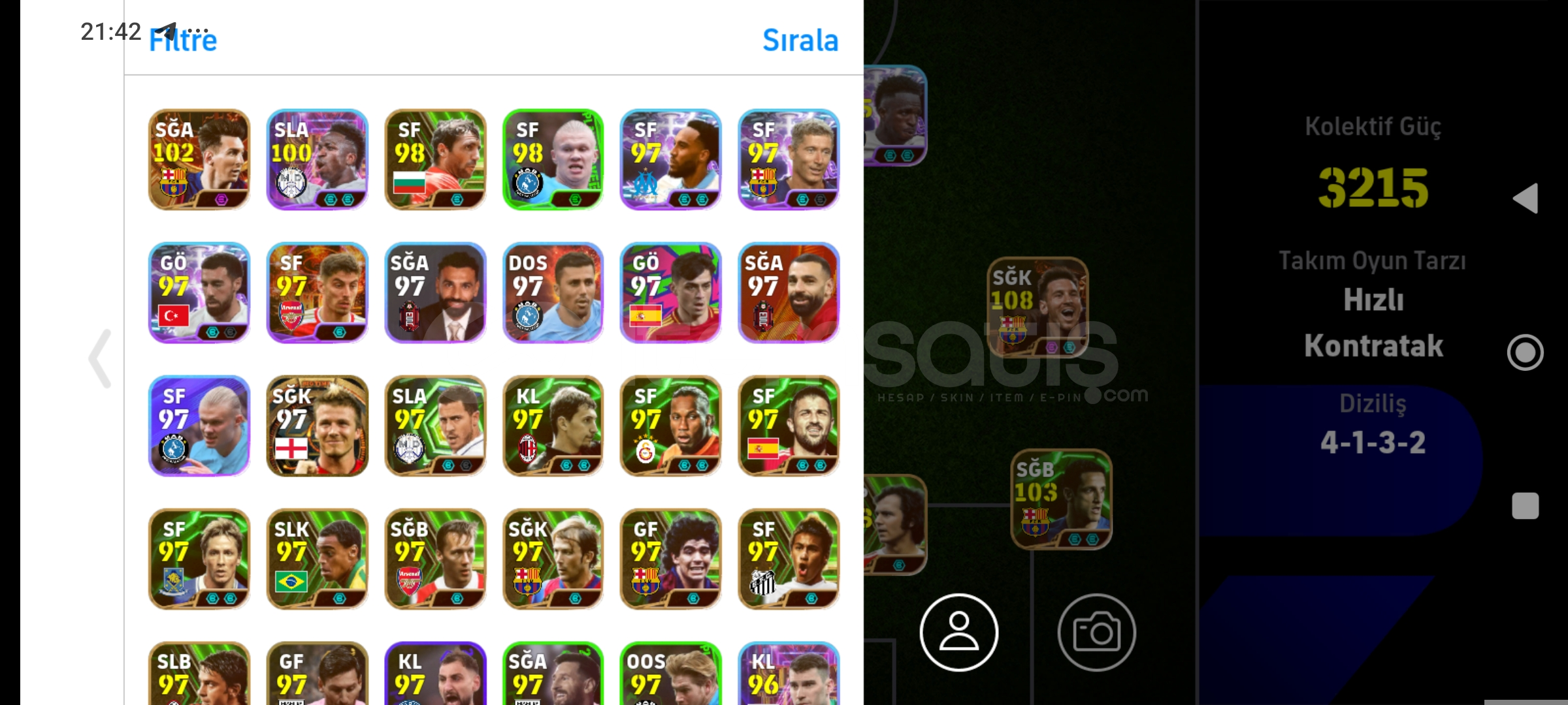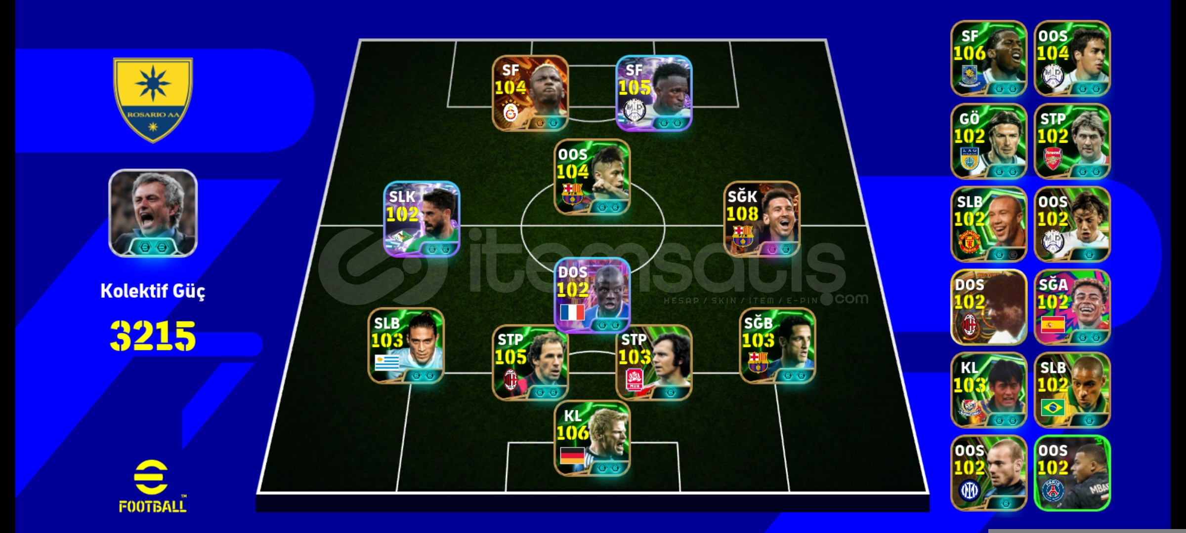 🏆Hesap 3215 kg 105 vini, 108 Messi, 106 Drogba,107 bigtime osimhen, 103 belleti ve 5 özel menejer türkiye kadrosu fln ilk satışım indirim ve pazarlık yapılır 😆