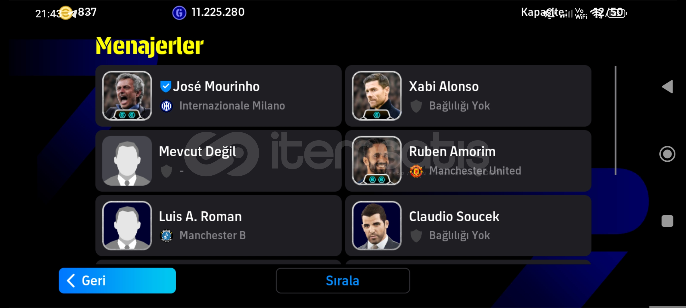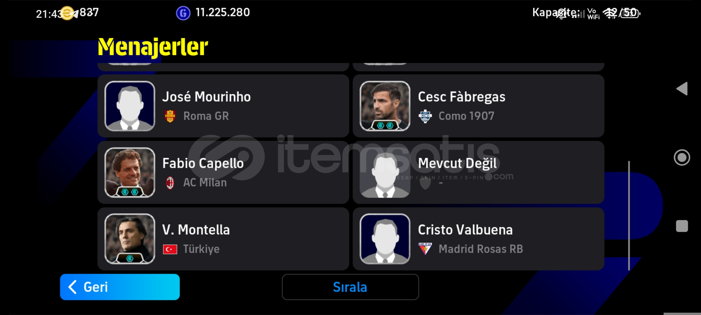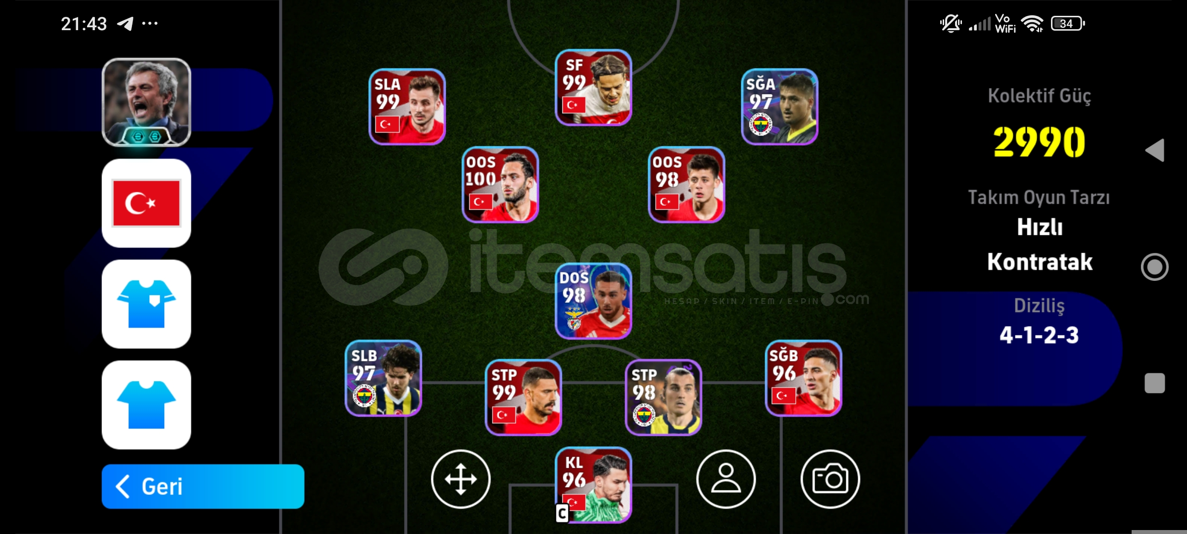 🏆Hesap 3215 kg 105 vini, 108 Messi, 106 Drogba,107 bigtime osimhen, 103 belleti ve 5 özel menejer türkiye kadrosu fln ilk satı&...