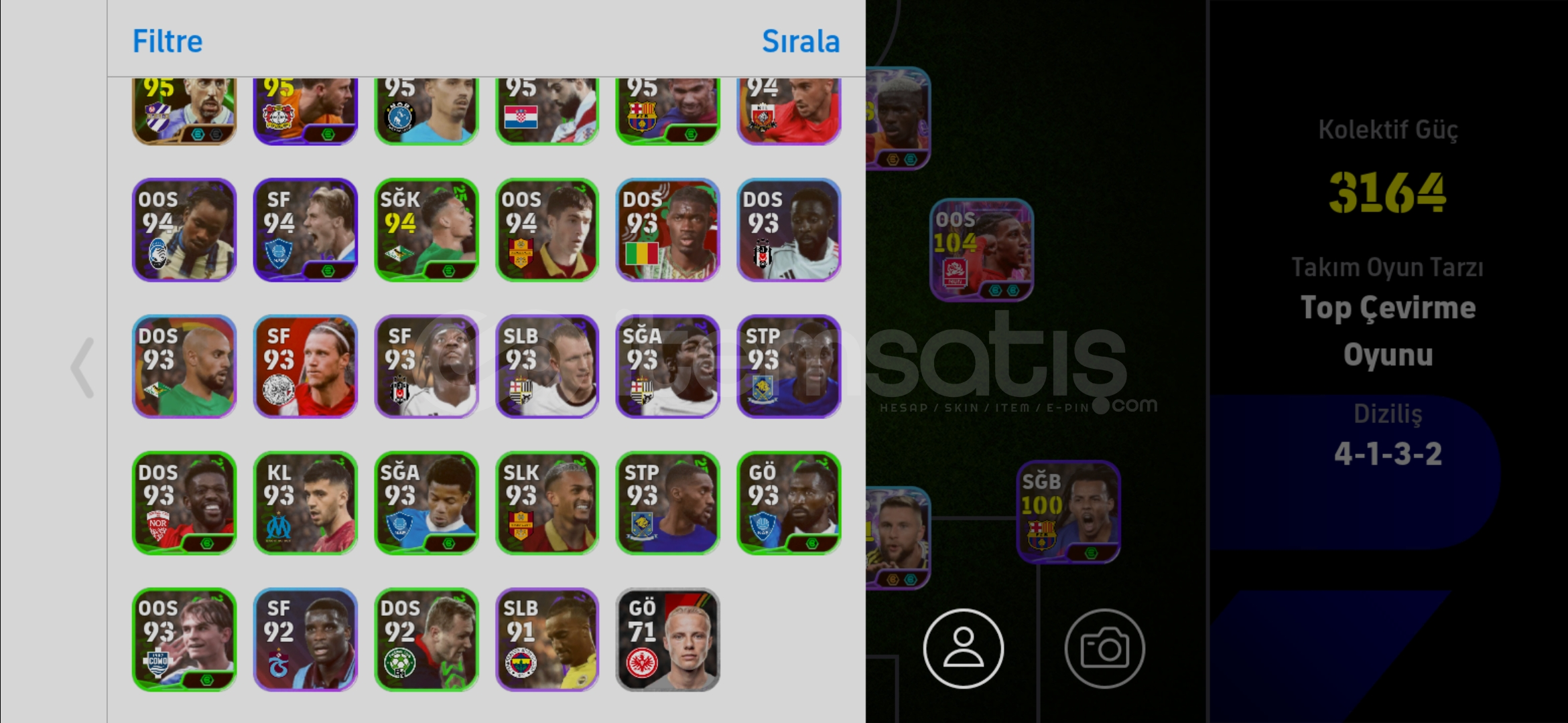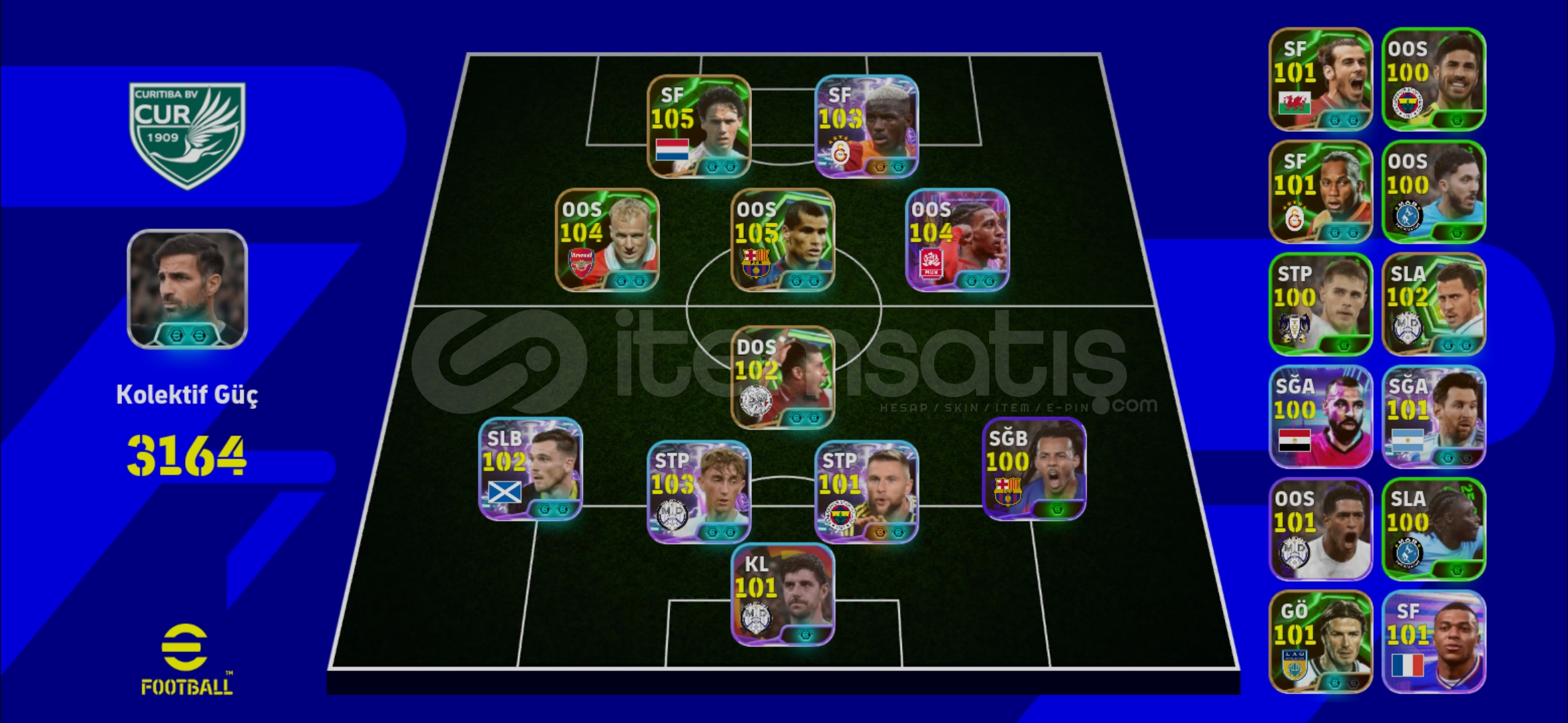 Merhaba,hesap göründüğü gibi efsane oyuncuları mevcutÇİFT BOMBACILI HESAPTIR.Düzeni oturmuş bir hesaptır.Td,FabregasRezervide iyidir Detaylı foto atıldı.Şimdiden hayırlı olsunTek bağ