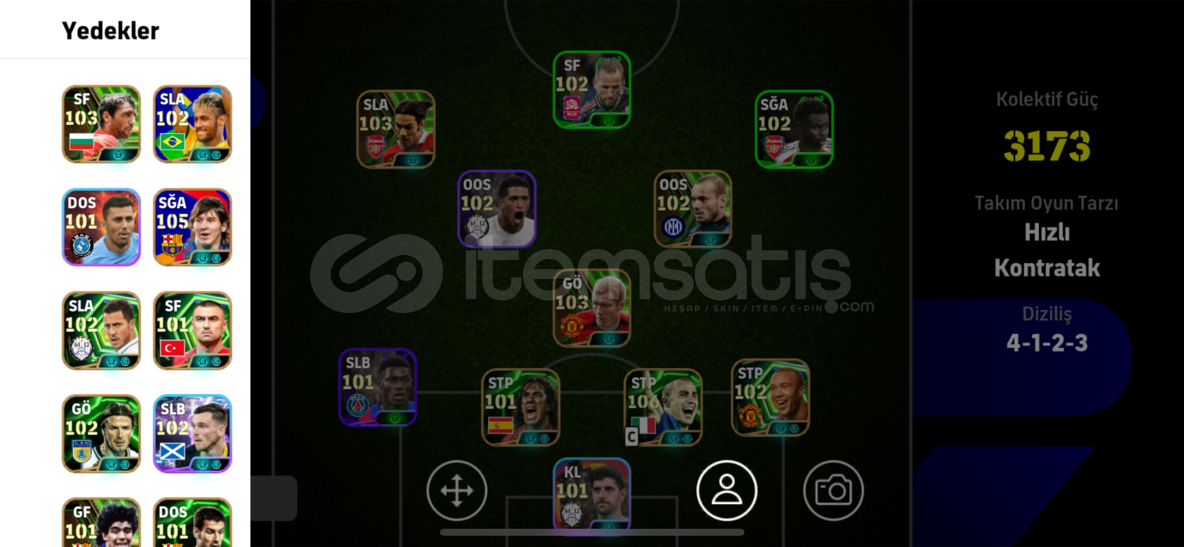 Hesap tek bagidri hesapta bombaci burak106 cannavaro ve arjantin brezilya paketi alinmistir 103 schoels ve show time baya oyuncu vardir