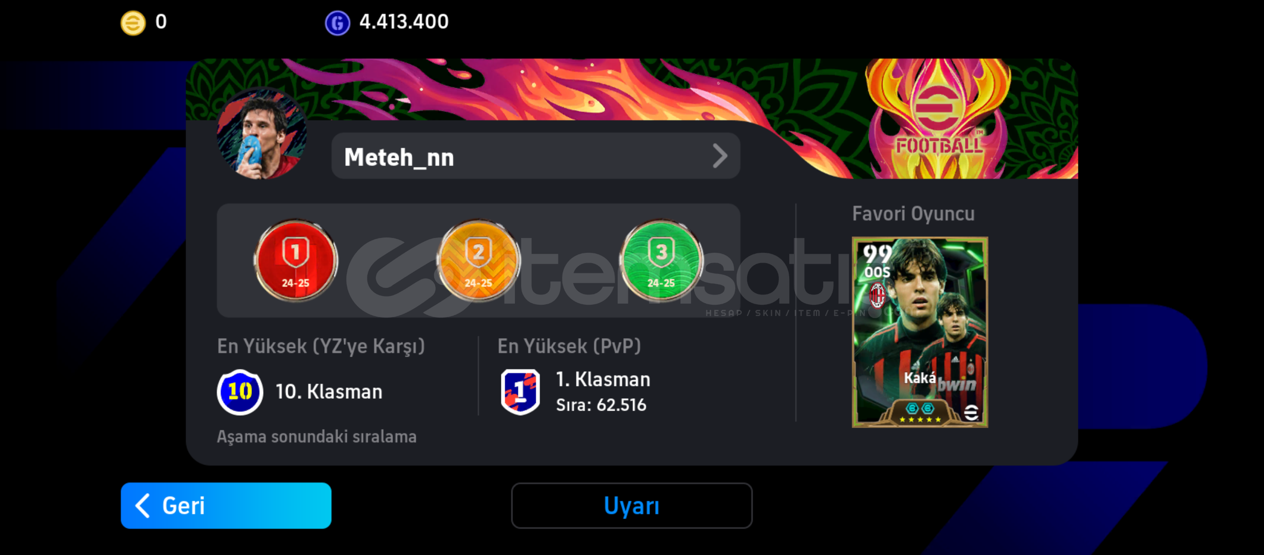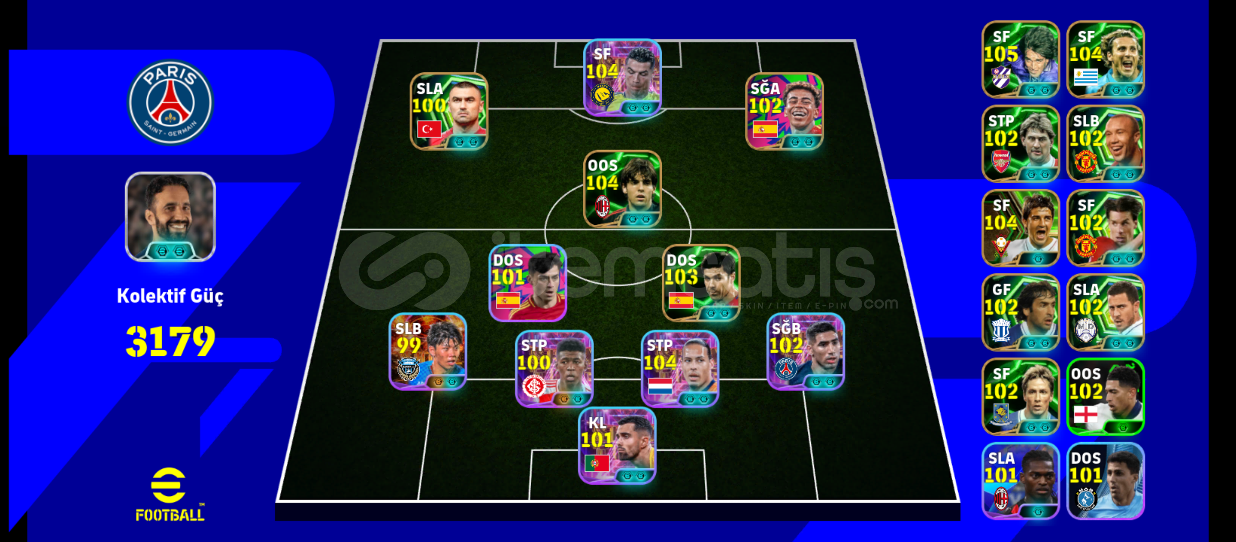 105 Ronaldo105 Kaka104 Van dijkFull paralı defans hattıYamal Paketi vardırTek bağdır.hesapla ilgili soru sorabilirsiniz.