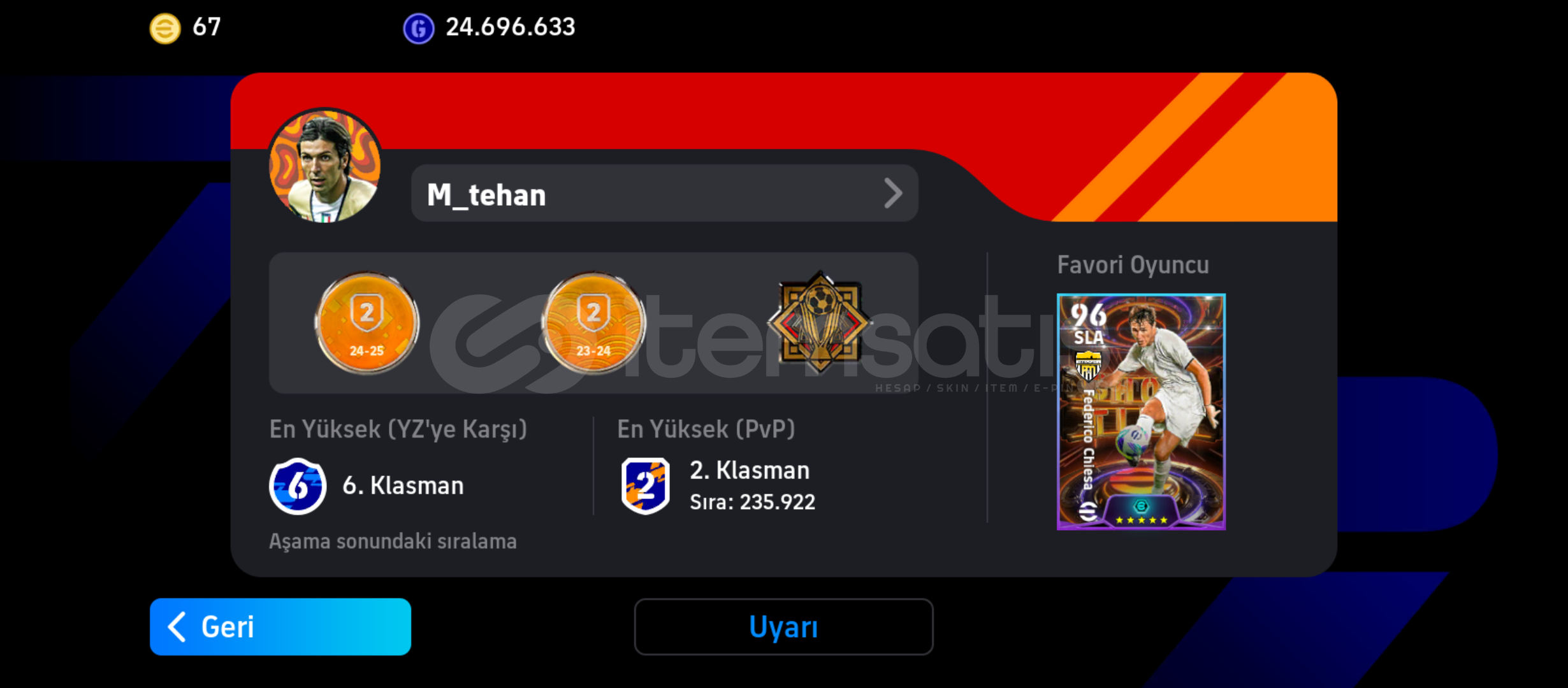 Hesap gördüğünüz gibidirTek bağdırRezervi dopdoludur full potw ve full süper lig kadroları bile oluşabiliyor ayrıca eskiden kalma birçok aşırı nadir kart vardırÇok sağlam çok iyi kartlar vardır7 adet özel menejer vardırBOMBA ŞUT CHİESABOMBA ŞUT RAFA SİLVADİNAMİK DEPAR VİNİCİUS JUNİORDİNAMİK DEPAR MAXİMİNYIKILMAZ ...