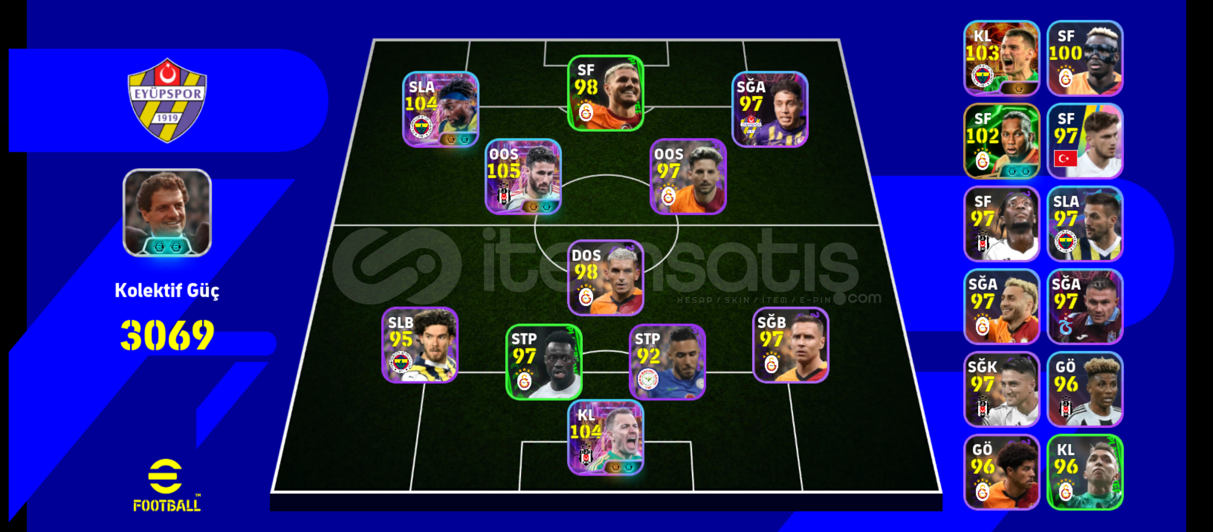 Hesap gördüğünüz gibidirTek bağdırRezervi dopdoludur full potw ve full süper lig kadroları bile oluşabiliyor ayrıca eskiden kalma birçok aşırı nadir kart vardırÇok sağlam çok iyi kartlar vardır7 adet özel menejer vardırBOMBA ŞUT CHİESABOMBA ŞUT RAFA SİLVADİNAMİK DEPAR VİNİCİUS JUNİORDİNAMİK DEPAR MAXİMİNYIKILMAZ ...