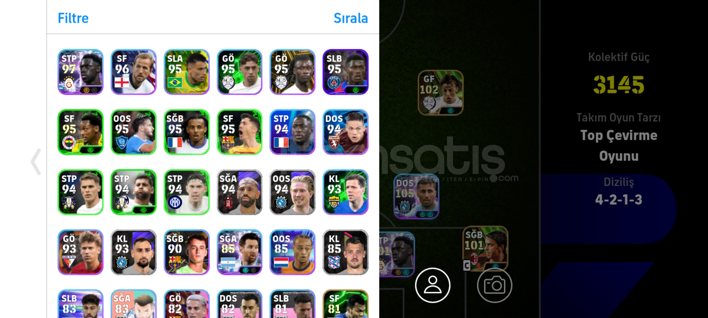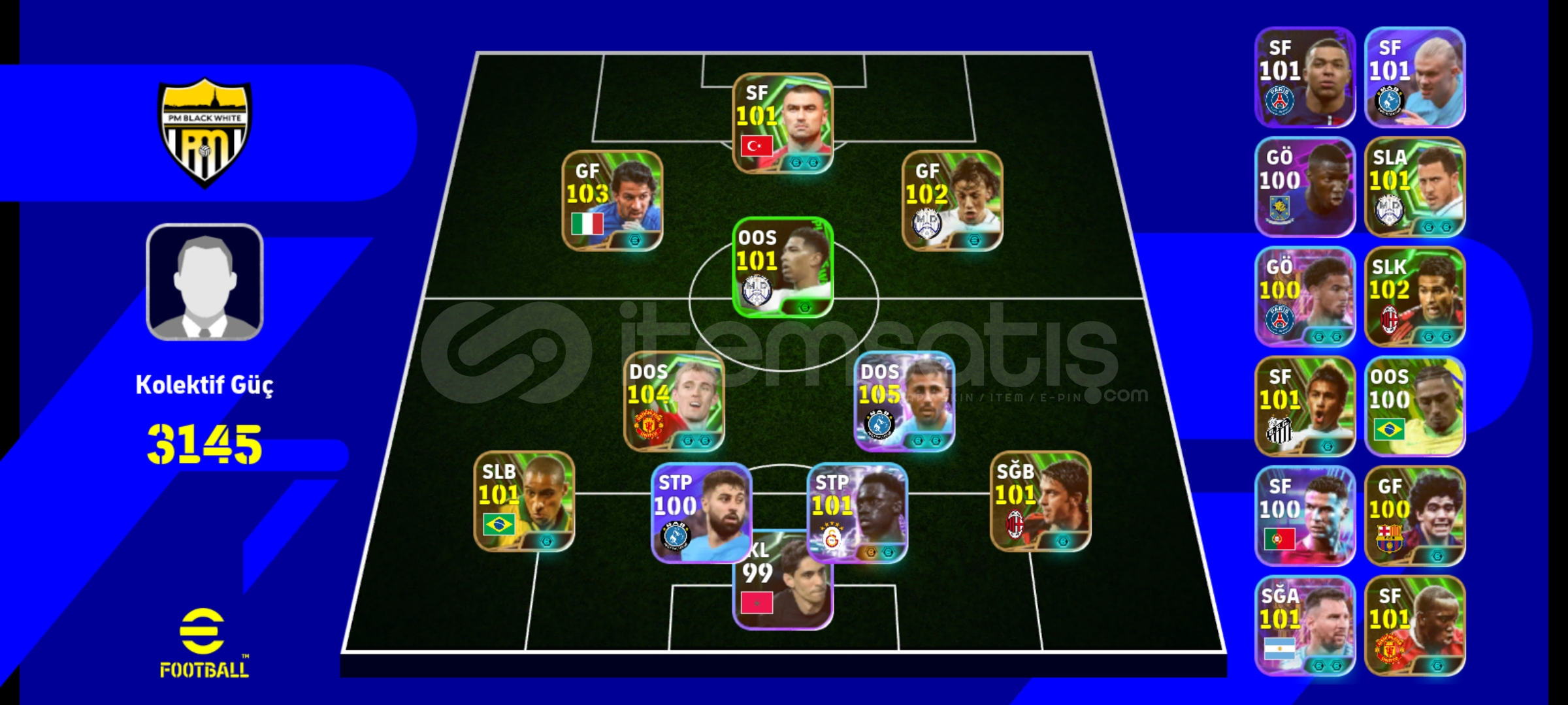 Tek bag sorunsuz hesap 104 fletcher106 rodri104 del piero101 Burak yilmaz101 davinson 2x102 carlos101 costacurta102 gutiRezervi hafiften vardir.Td cekerseniz kgsi 3150ye gelir rahat