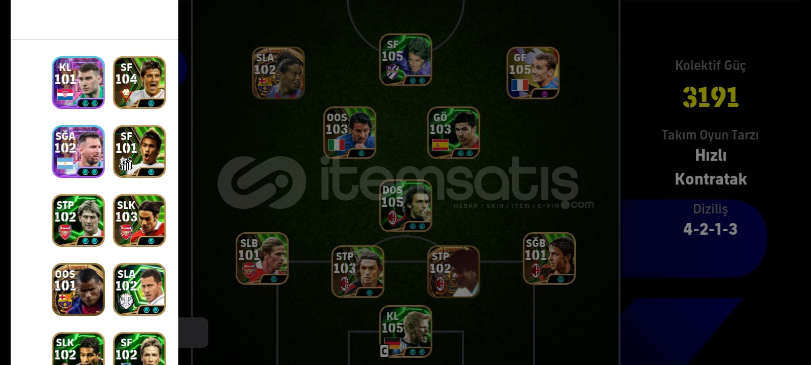 REZERVESI DOLU BOMBACILI HESAP105 GRIEZMAN105 PIRLO102 RONALDINHO102 RIJKAARD101 RIVALDO103 MALDINI UYGUNA HESAP