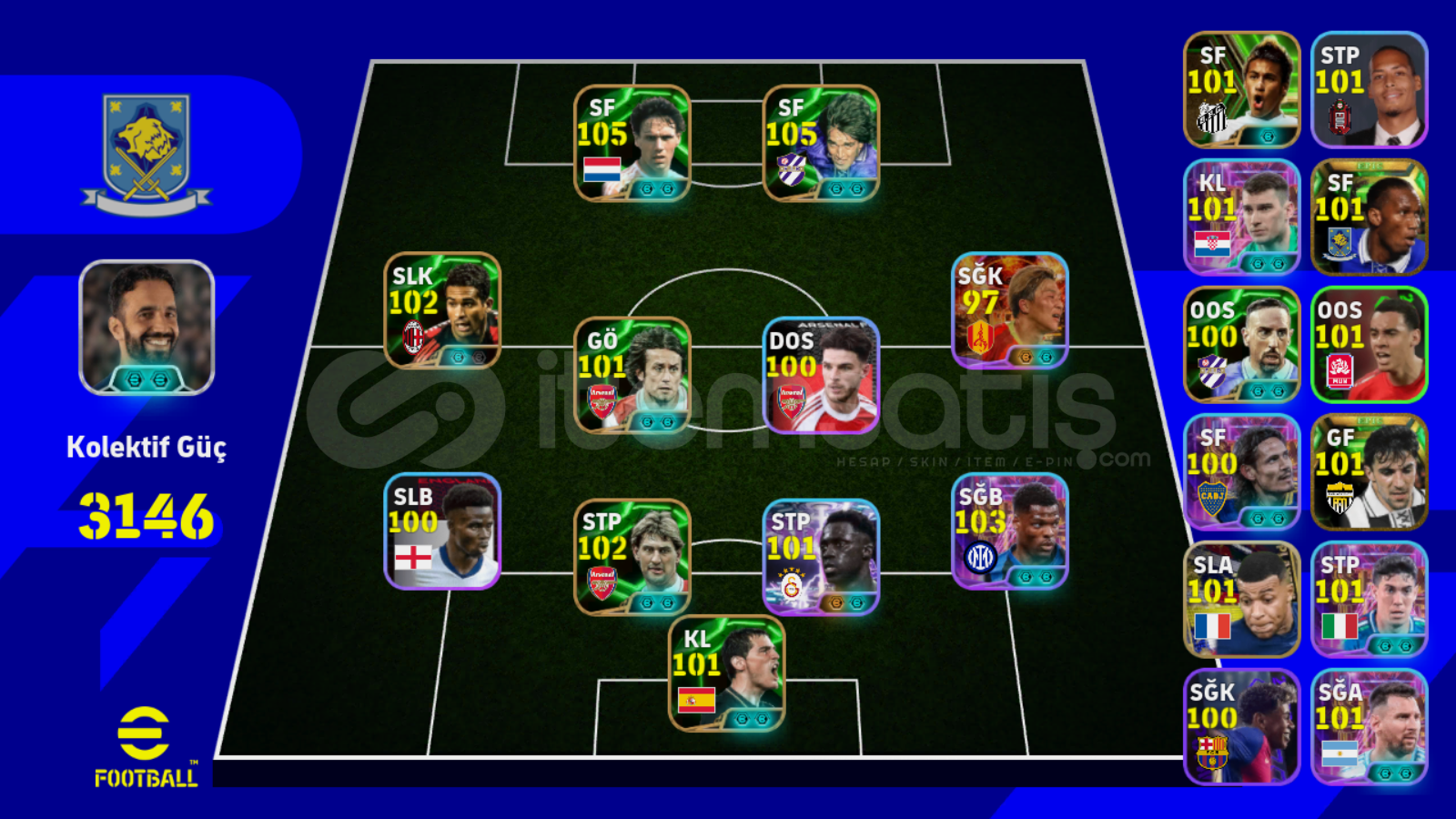 Bombacı hesap101 drogba101 del piero100 rosicky101 neymar101 bastoni102 tony adams104 batistuta101 livakovic100 ribery100 cavani103 dumfriesve dahada düşük seviyede epicler101 casillas104 van basten100 riceçift boostlu menejer101 rosicky102 serginho101 davinson sanchez