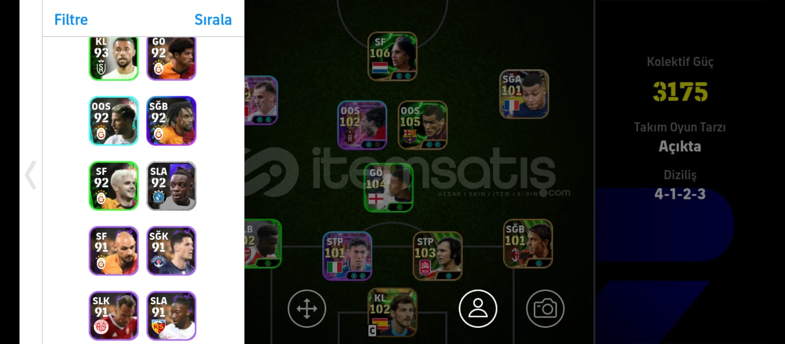 hesap tek bağ 8 giriş hakkkı mevcuttur 3 bombaacı vardır nadir heesapdır böylesi zoroyunda çokca ranan icardi sacha boey fernando mulera vee mertens gibi gs kartları vardır