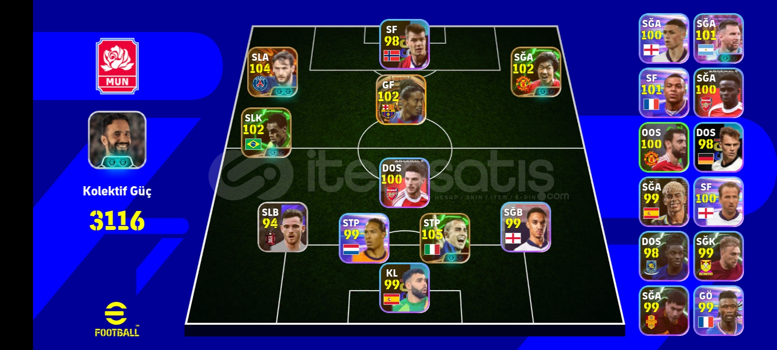 105 Bombacı kvara106 cannavaro103 denılson102 Ronaldinho big time103 park jı sung