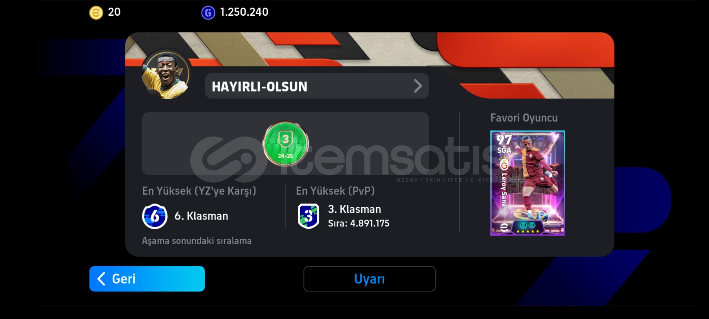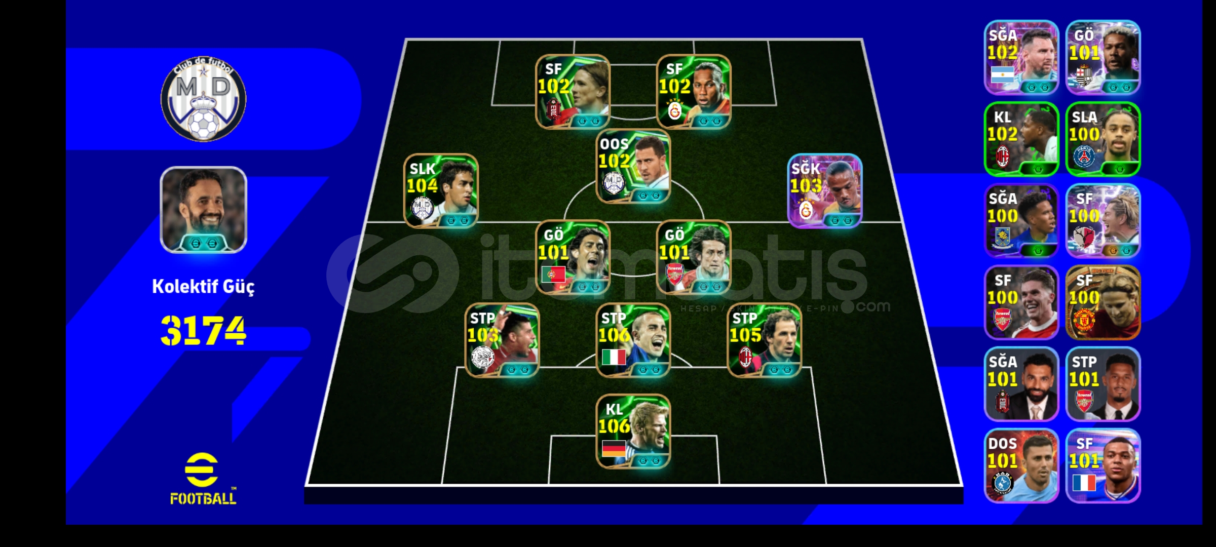 Hesab güzel hesabta forlan eski kartı var 104 Raul var bombacı sane var hesabin kg di 3174 hesaba 5 tane 101 oyuncu çıkarsanız hesabın kg si 3180 geçer hesab tek bağ dır kaçırmayın derim