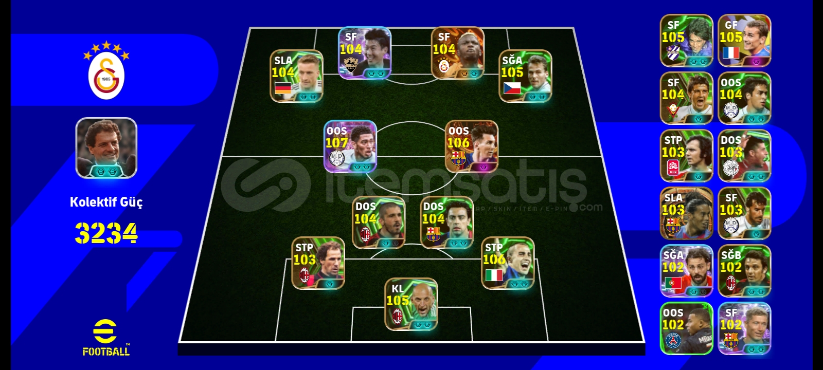 TEK BAĞ EKSİ MC YOKTUR 8 PARALI MENAJER BULUNUR ÖMÜRLÜK HESAPDAHA DOLU REZERV YOK capello104 BOMBACI SON 107 OSHİMEN 107 BELLINGHAM 106 MESSİ 106 NEDVED105 GRIZMAN 105 MARCO REUS 104 GATTUSO 105 ABBIATI VİDEO İÇİN YAZIN ÇOK UFAK İNDİRİM OLUR