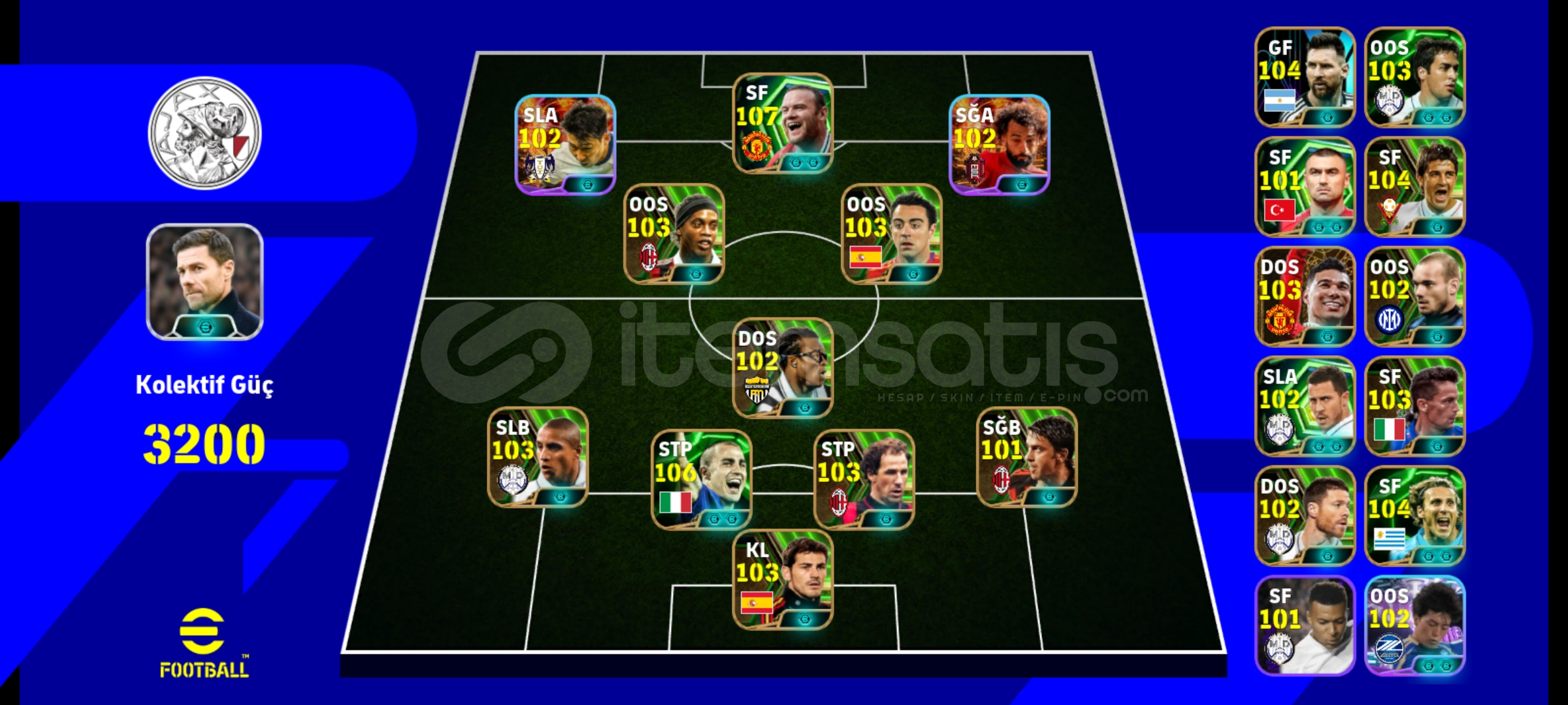 Hesapta 4 Bombacı Vardır Ayrıca 2 Bombacı Oynun En İyi Bombacıları Arasındadır Son Ve Salah Hesapta 107 Wayne Rooney 🎯 103 Xavi 🏆( Pasları Efsane Ötesi ) 103 Casillas 🧱(Kendisi Gol Yemiyor ) 103 Ronaldinho 🎩 103 Roberto Carlos 👑 Gibi Oyuncular Vardır / Hesap Tek Bağdır - MC 900 vardır