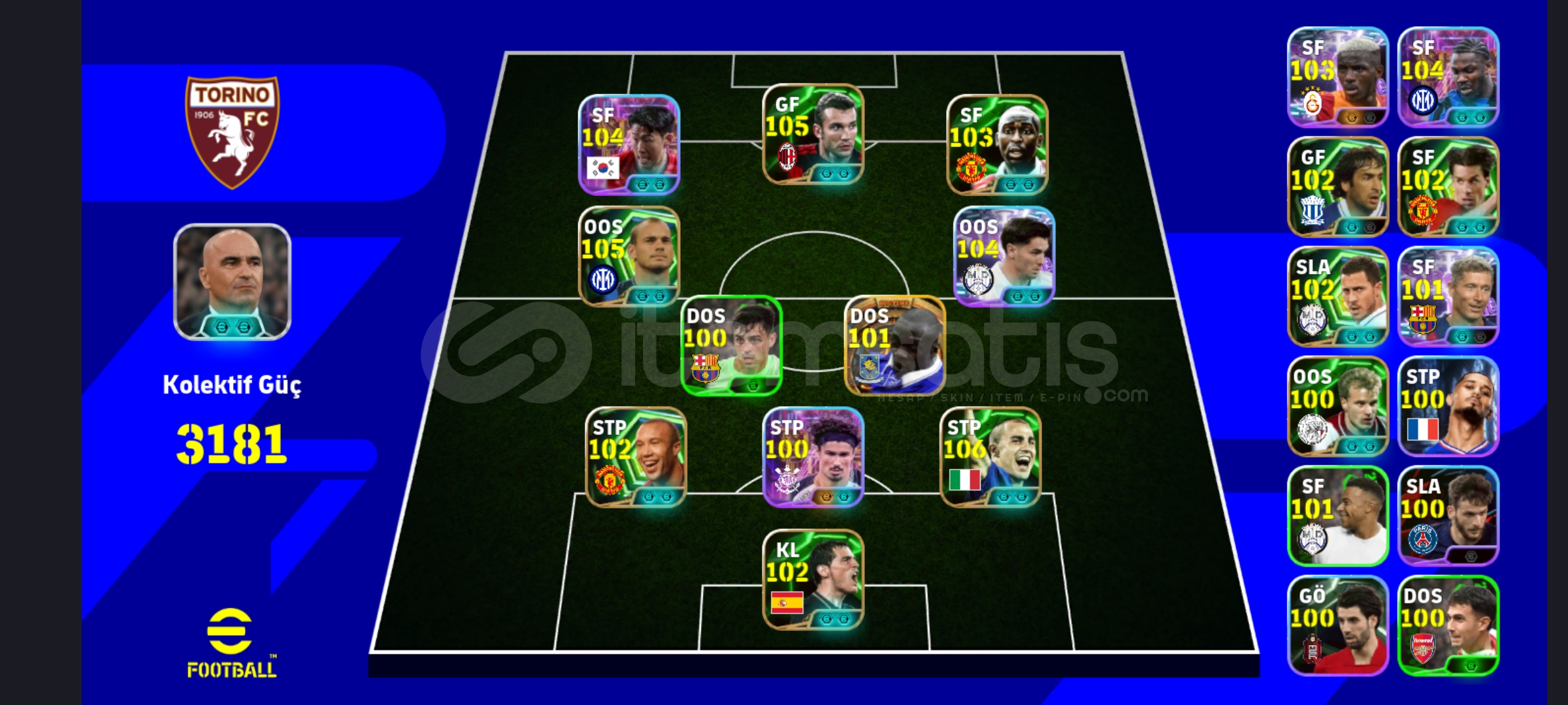 106 Shevchenko 104 Son 104 Diaz 104 Thuram 104 Andy Cole 105 Sneijder 106 Cannvaroİos/Android Tek bag -MC yok