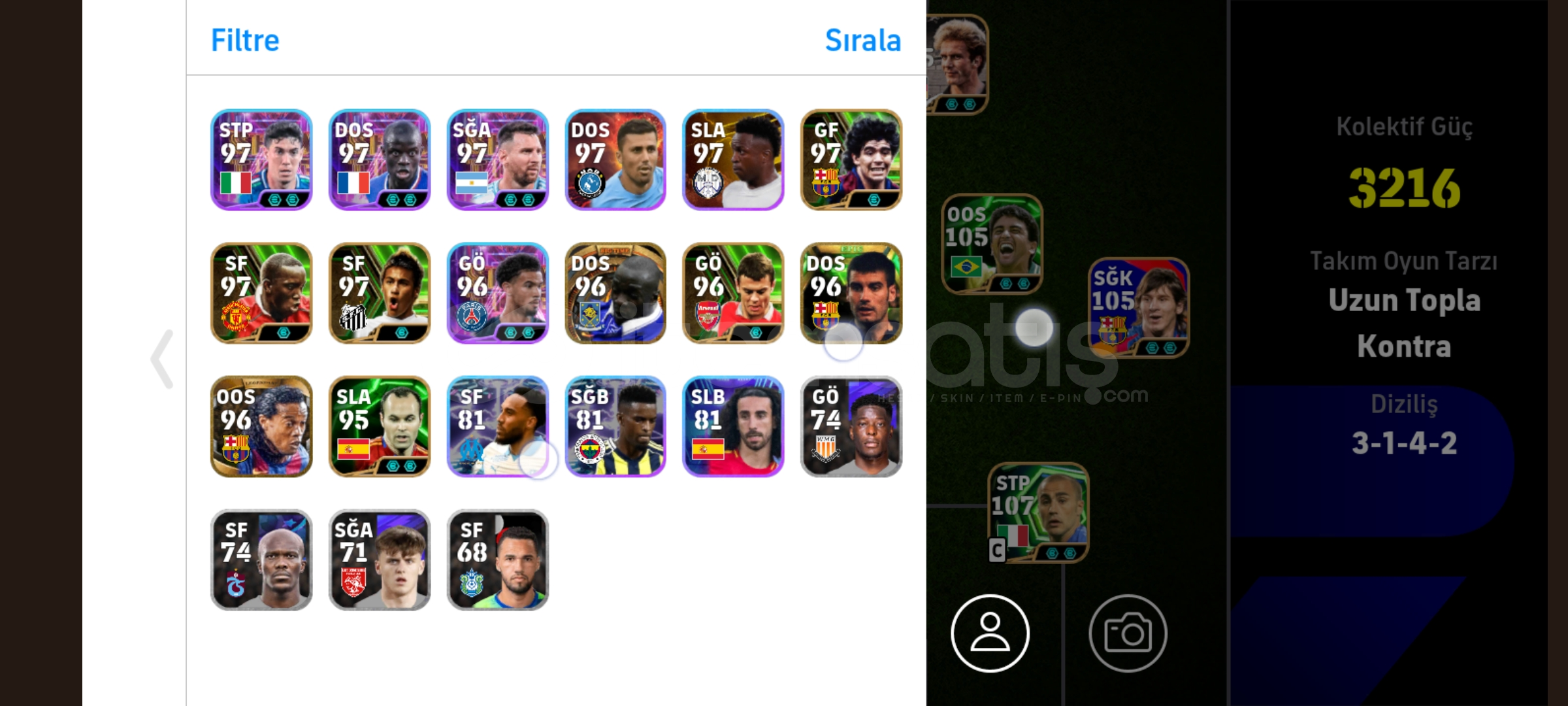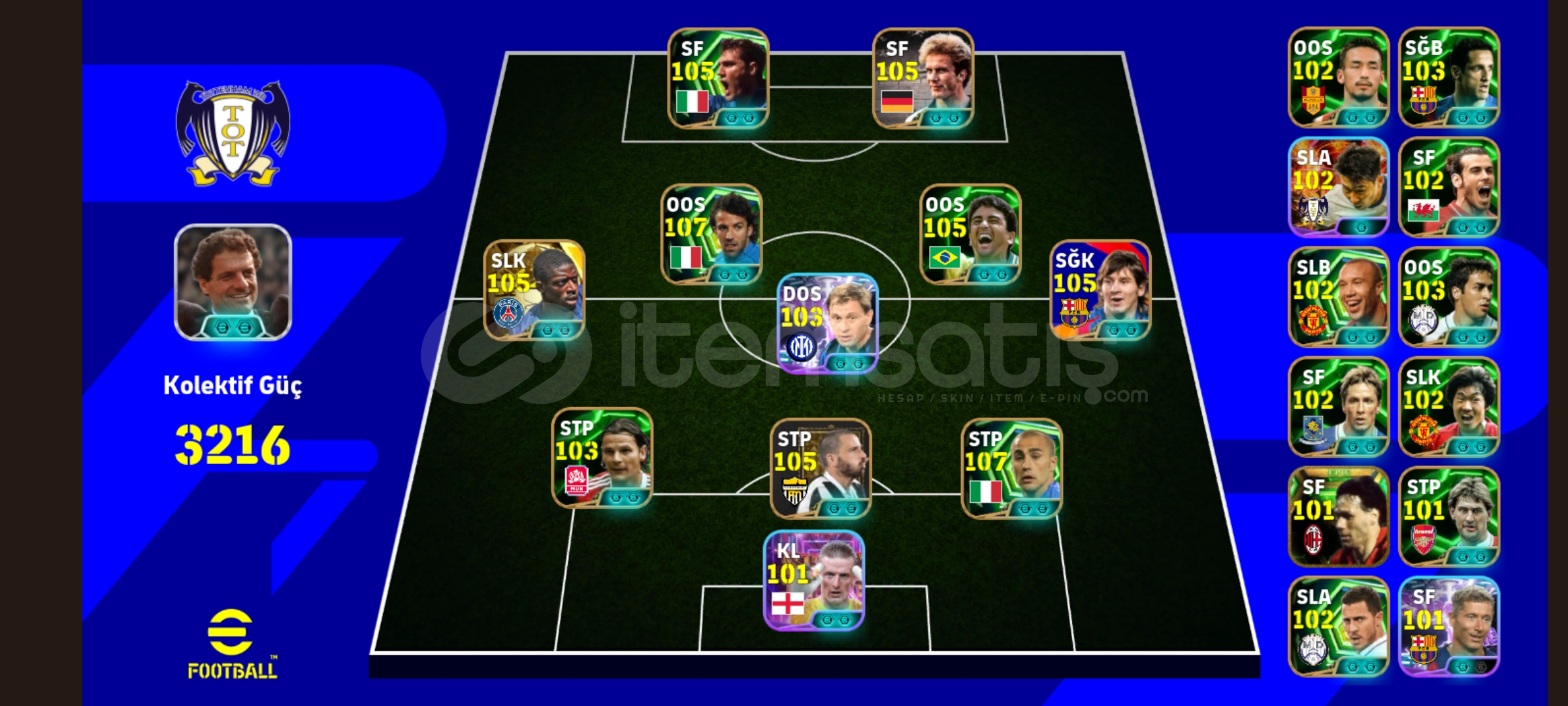 Kg 3220 ye kadar çıkıyor Oyunun en iyi bombacısi son ve 3 tane daha bombacı var Tek bağ eksi MC yok 3 tane özel menajer 105 Rumenige 105 Messi 105 bonucci 107 cannavaro 105 dembele 107 del piero ve daha nicesi alana hayırlı olsun