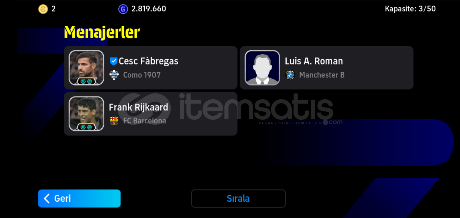 Hesabin hiç bir sıkıntısı yoktur tek bağ -mc yoktur şimdiden alana hayırlı olsun106zico(bombacı)106iniesta104panucci104reus105maicon105puyol102gvardiol102bombaci doue2tane özel menajer mevcuttur rezervler ortalama