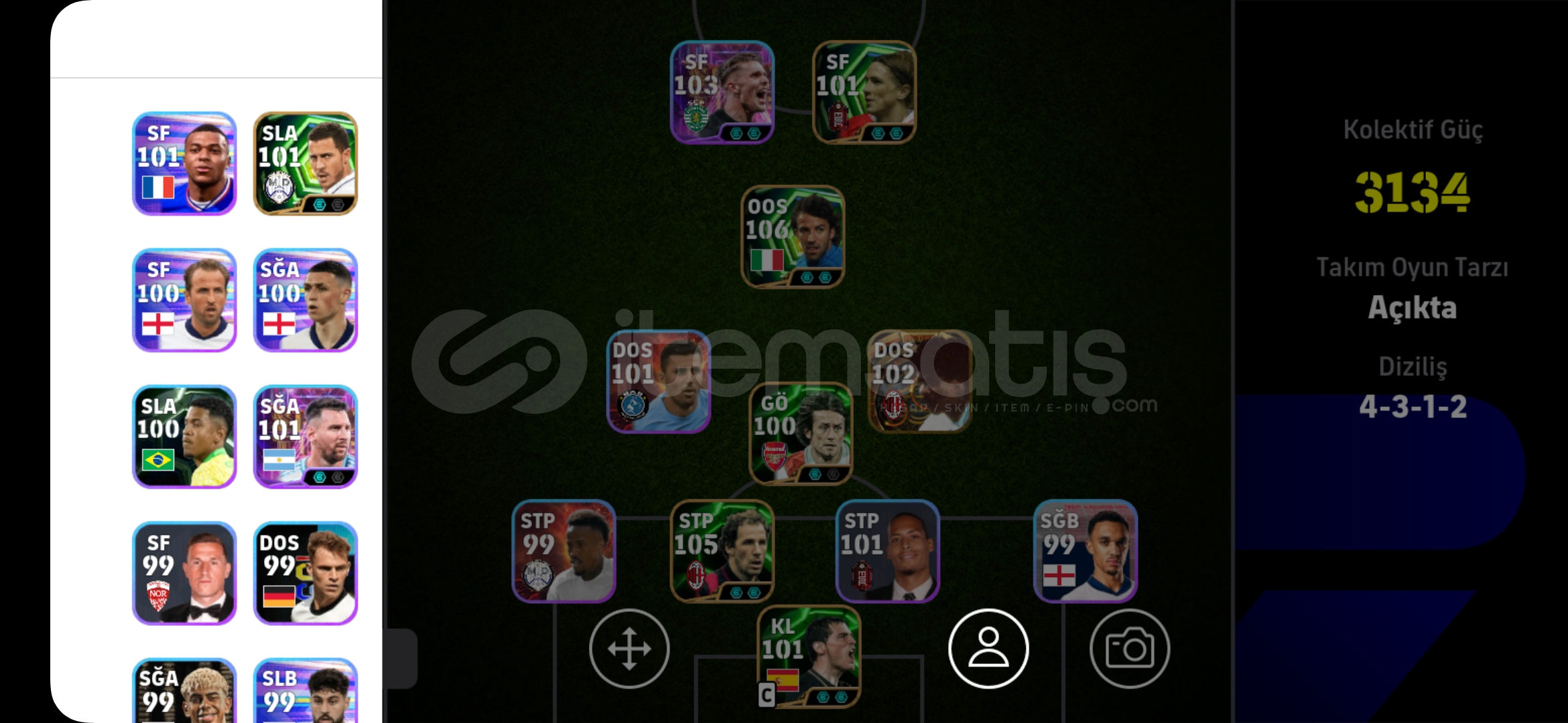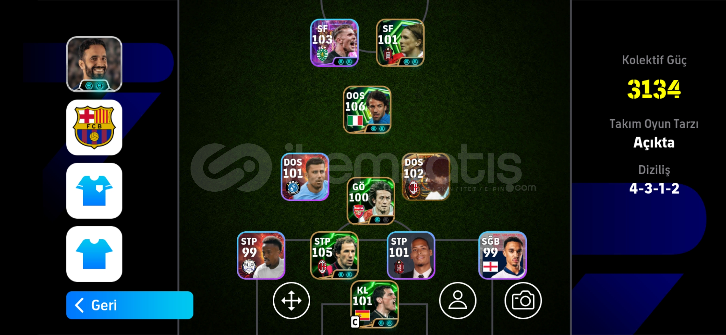 107 bombacı del piero 105 baresi 104 gyökeres 102 casillas 102 rijkaard 101 fernando torres 101 rosicky 101 eden hazard 101 van dijk TEK BAĞ KONAMI İD