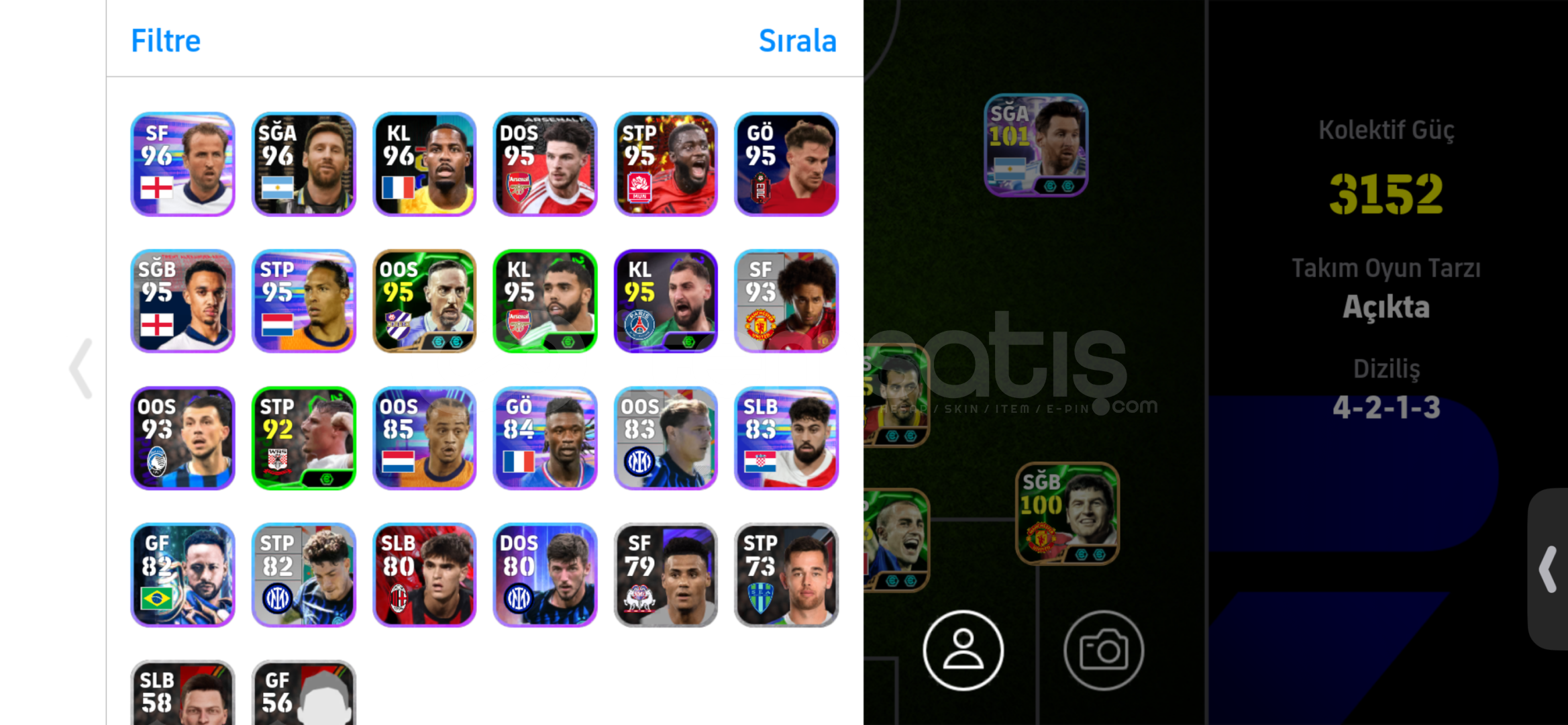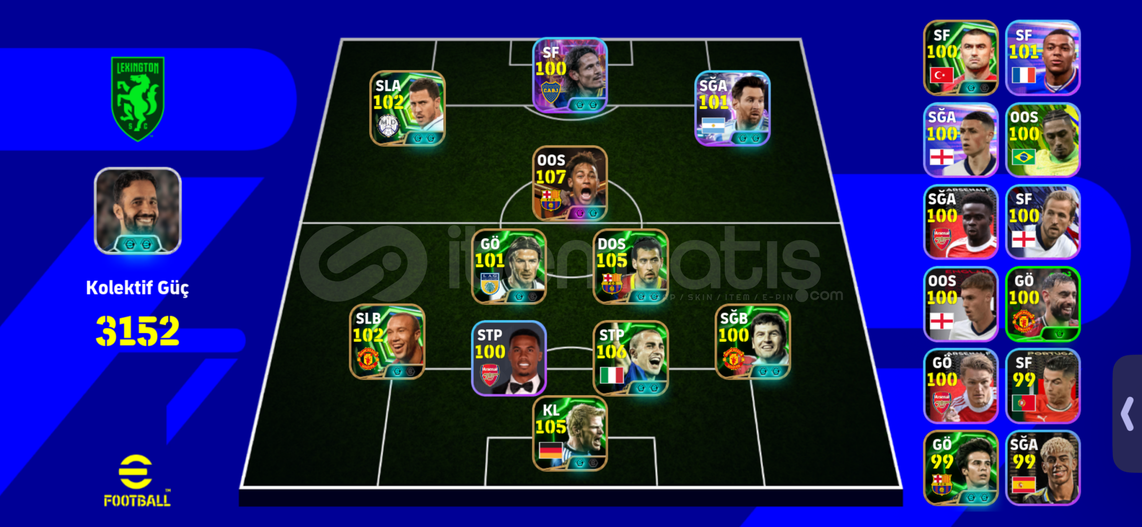 Hesap doludur içinde göründüğü üzere 107 neymar 105 busquets 105 kahn 106 cannavarro ve kafacı cavani vardır.Güçlendiriciler basıldığı takdirde Burak Yılmaz 101 Kahn 106 olacaktır bunlar olunca da takım gücü 3160’a gelir.Hesap tek bağdır mc ekside değildir sorunsuz sıkıntısız hesap alıcısına hayırlı olsun.