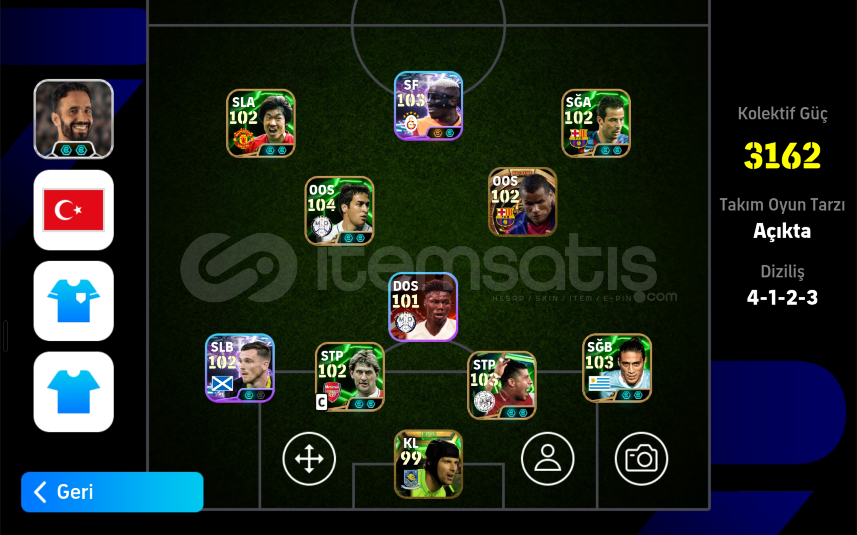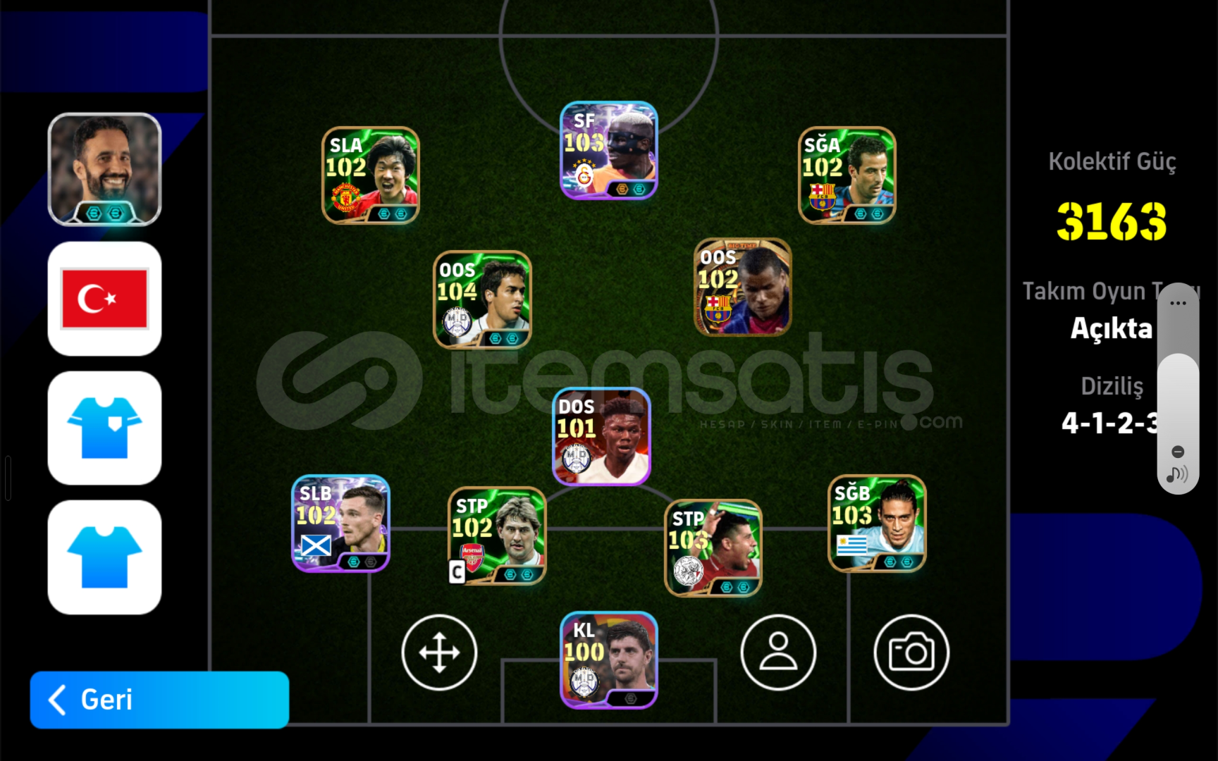 Hesapta bombacı vardır nadir kartlar vardır rivaldo veya dimaria neymarın kartları gibi 107 osimhen vardır Max kg 3163 fakat bir oyuncu 102 oluyor onu koyunca 3164 veya 3165 olabilirHesap mükemmel şuan 3. Klasmanda tek bağdır Peter cech de vardır nadir ve baglı bir kalecidir