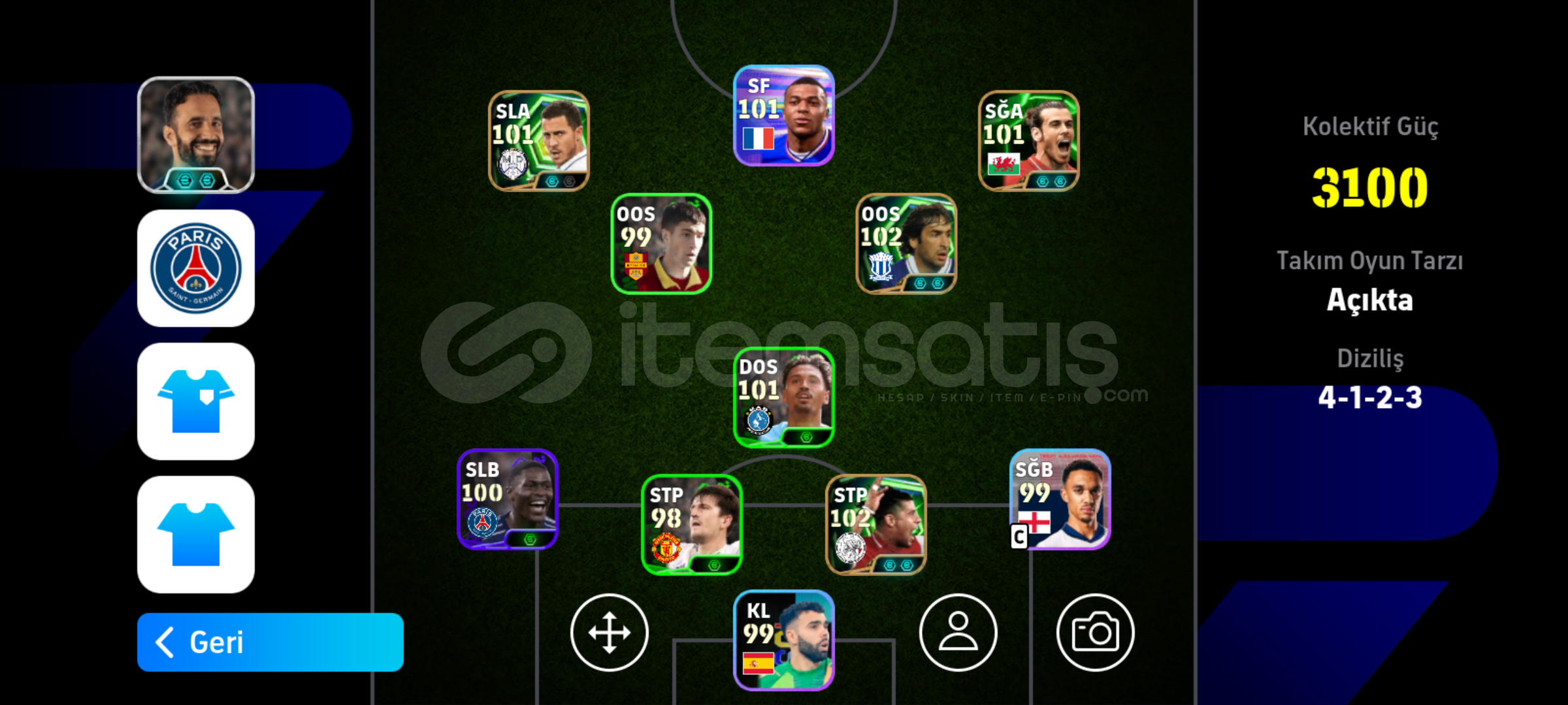 MÜKEMMEL UCUZA KALİTELİ HESAPHesap Fotoğraftaki Gibidir.Hesap Tek Bağdır.Hesapta -Coin Yoktur.3105 Kolektif Gücü Vardır.Hesapta Bombacı Gareth Bale Vardır.Hesabı Aldığınızda Mail,Mail Şifresi Ve Konami ID Şifresi Teslim Edilir.Hesabın Mailini Değişebilirsiniz.Otomatik Teslimat Olduğu İçin Satın Aldığınızda Anında Tüm Bilgiler Teslim Edilir A...
