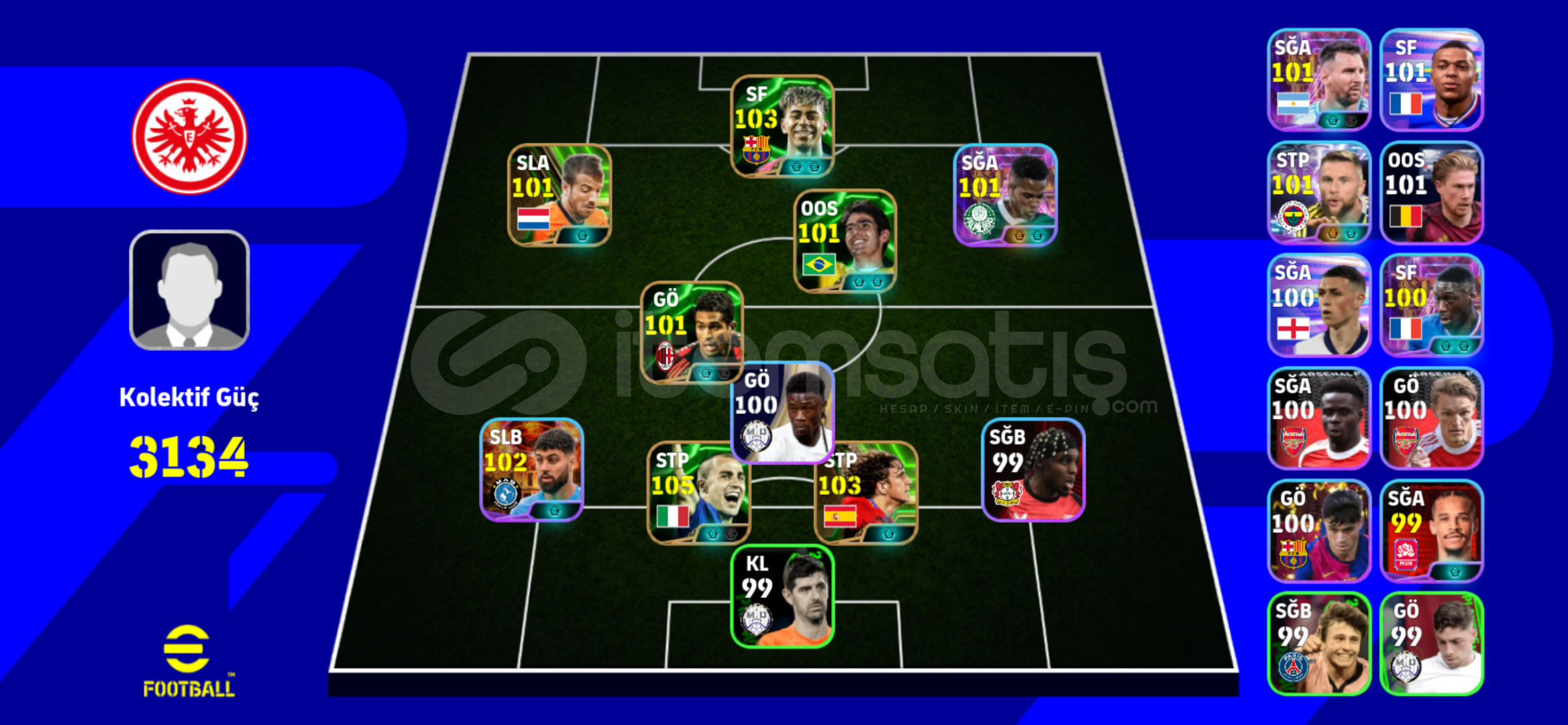 •-1070mc•tek bağ•105 cannavaro•101 skrinyar•103 yamal(kıvrak çalım)•103 puyol•102 gvardiol•102 estevao(bombacı)•101 kaka
