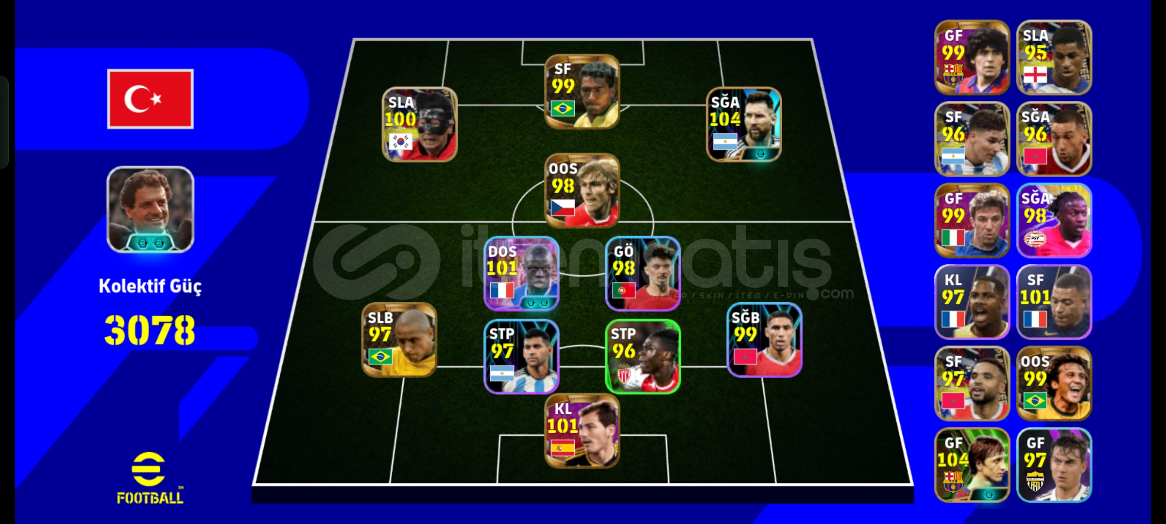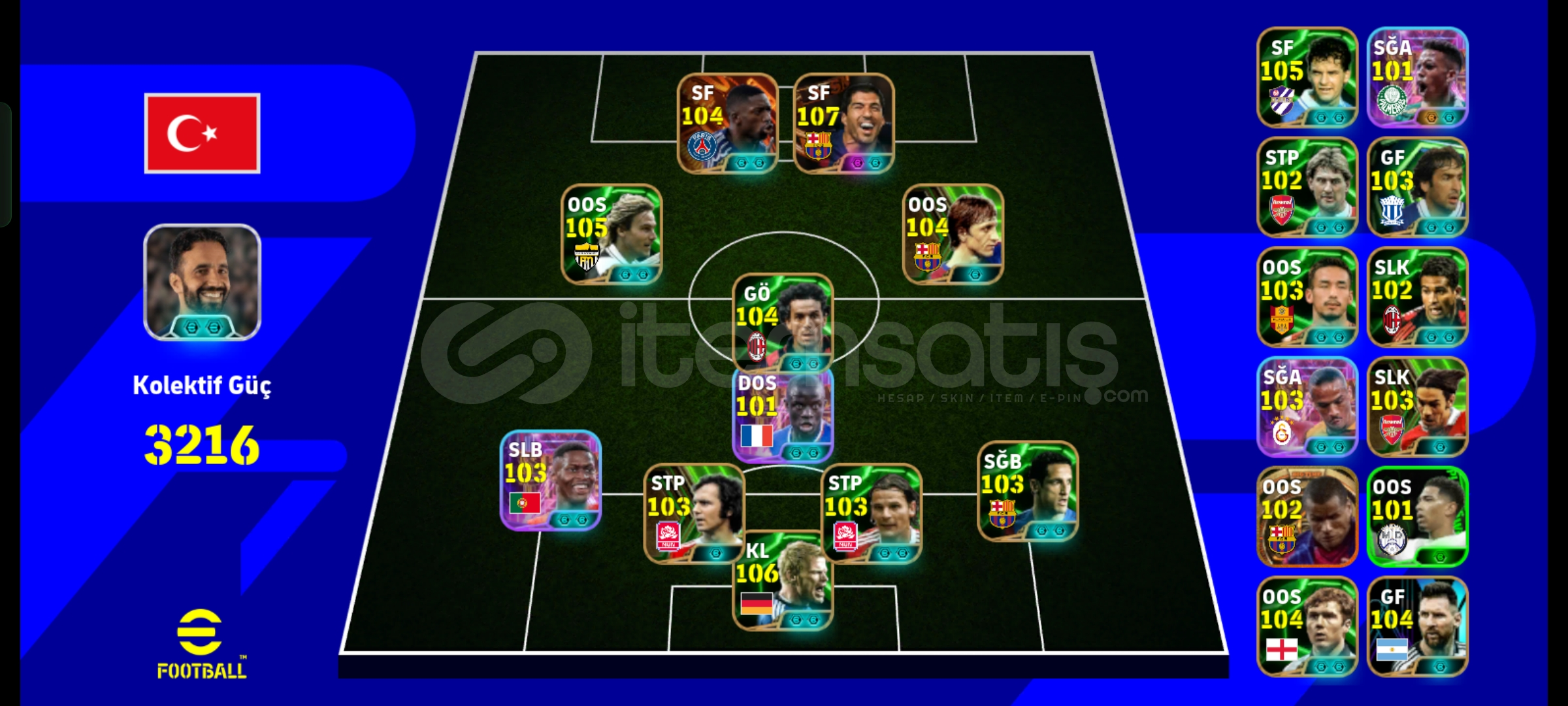 Hesap tel bagdır nadir kartlar dopdoludur nadir kartlar kadrosu süper lig kadrosu da bulunmaktadır bombacı sane vardır ve dinamik depar rafa vardır suarez dembele vs. Hersey vardır hesapta alıcısına hayırlı olsun tek bagdır aldıgınız an aktifim.ayrıca doğru güçlendiricilerle 3220 olmaktadır.