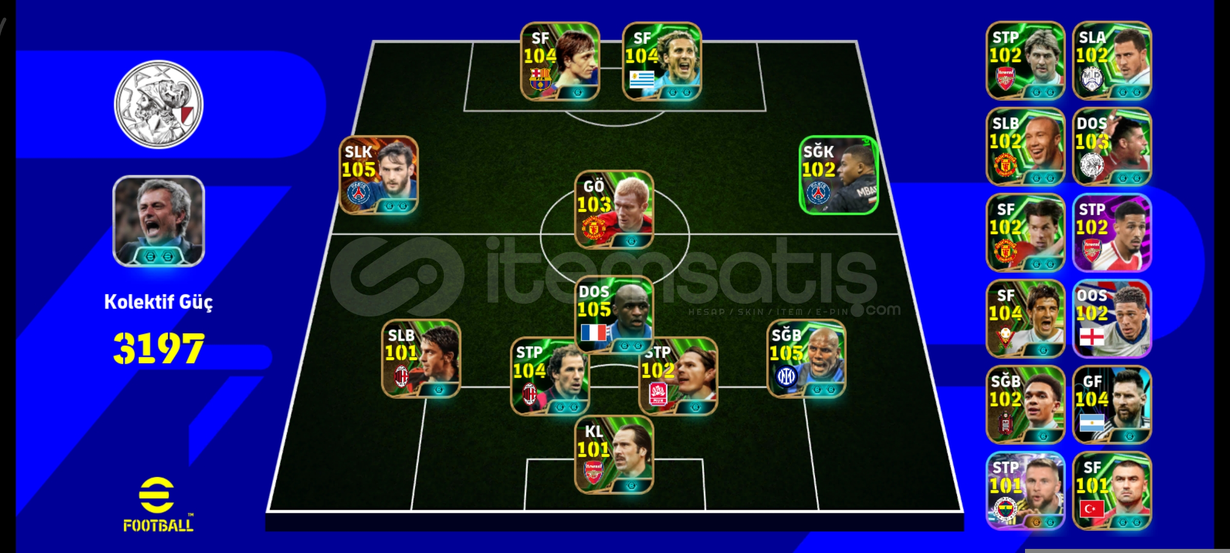 Hesap da çift taraflı bombacı kvara var .Orta sahada viera ve scholes bulunuyor . Santrafor oyundaki en iyi santraforlardan biri olan forlan var. Gf zaten oyundaki en iyilerinden biri cruyff hesap mükemmel 3 tane boostlu menajer var sağlam kadro sağlam rezervli hesap arayanlara.Hesbın Max kolektif 3191 onun içinde Van nisteroloji'e boost basılması lazım .Hesaba 800 TL para yatırılmışdır .Hesap da eksi mc yoktur&n...