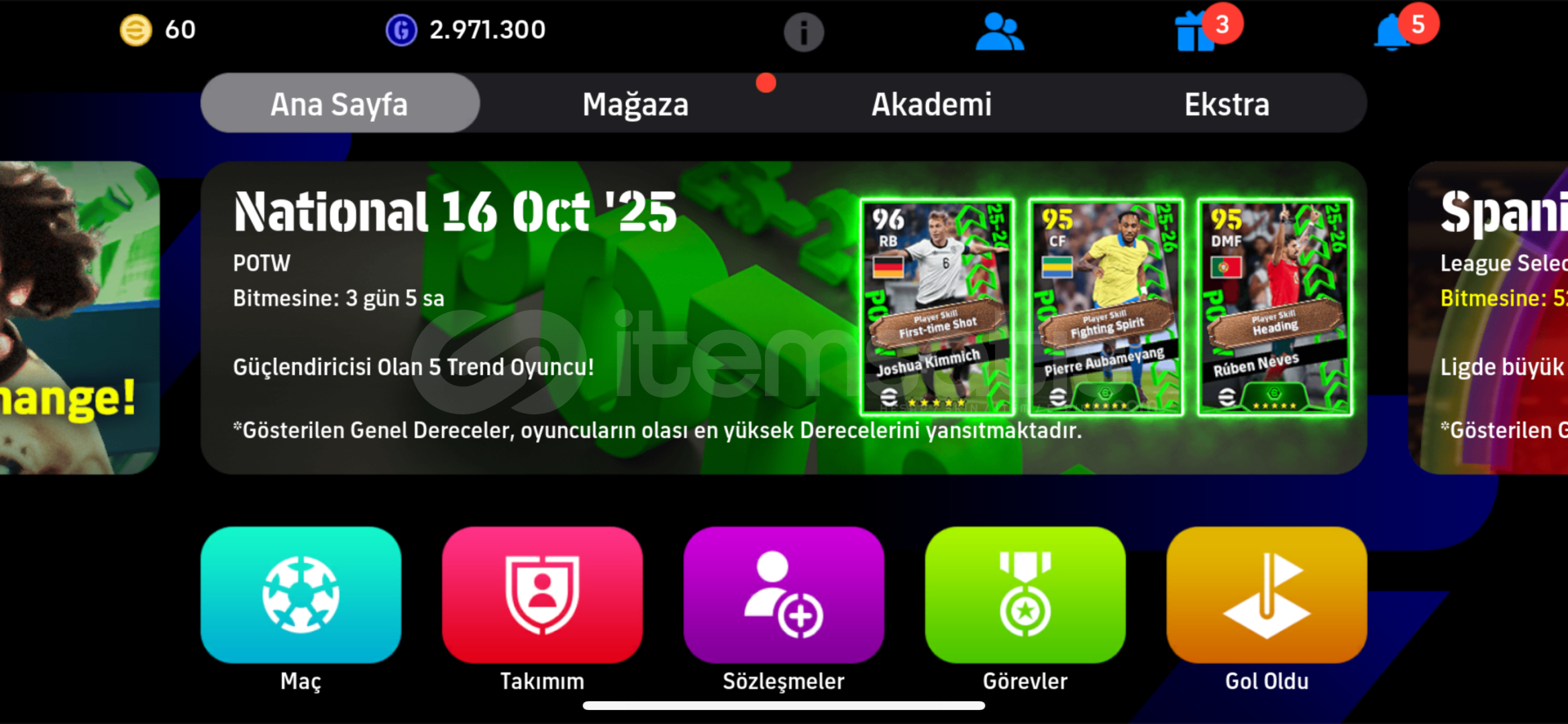 Başlangıç hesabıdır aldım diyene hayırlı olsunKadrodaki üst düzey oyuncular:CR7 (104),Rivaldo (104...