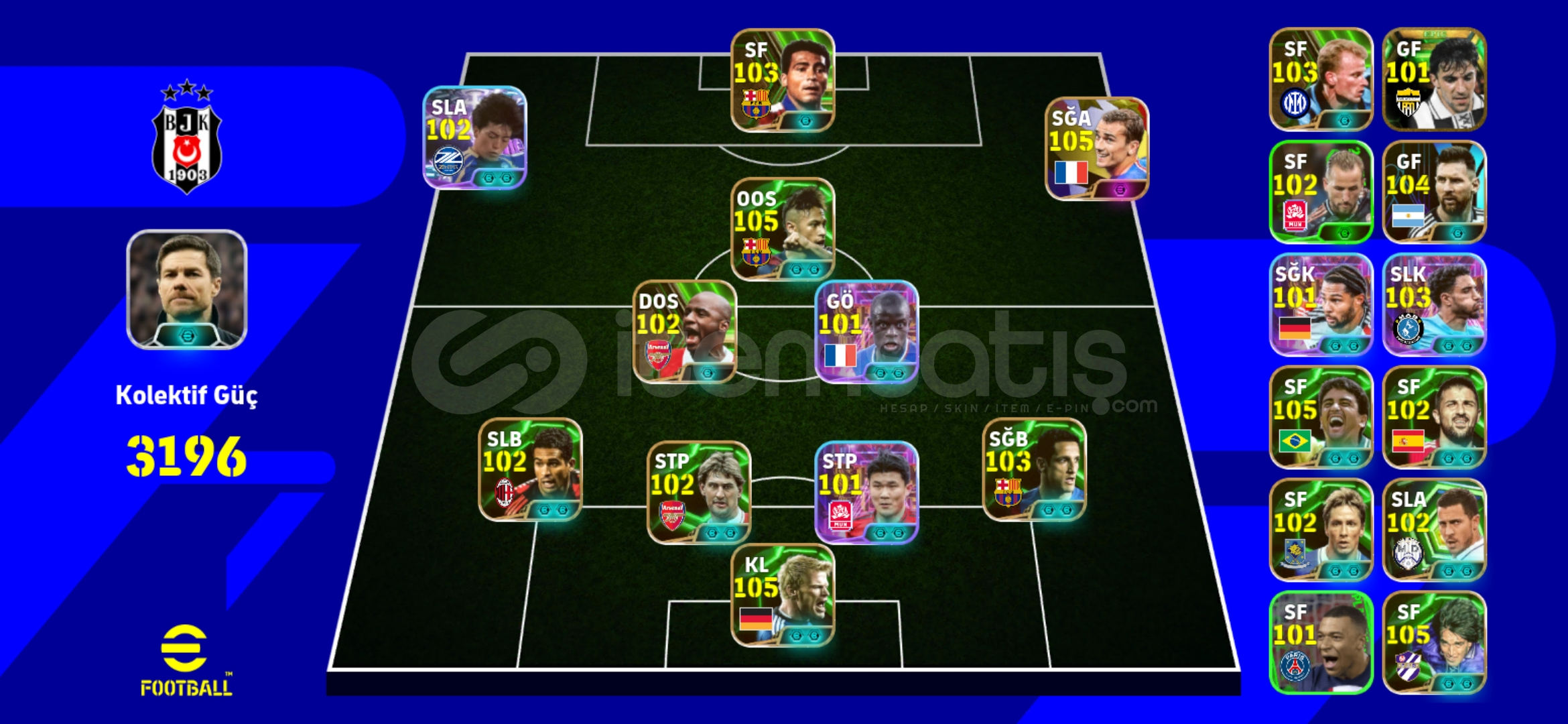 105 lahn 103 romario102 bombacı soma105 grizmann105 neymar102 viera 105 bebeto Süperlig kadrosu Bir sürü eski kartlar