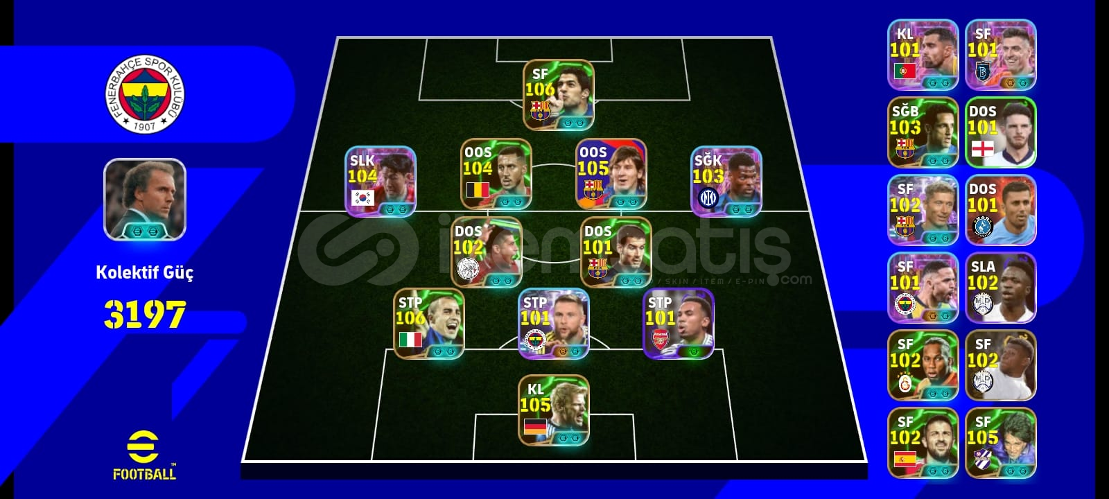 SATILIK106 SUAREZ104 BOMBACİ SON105 MESSİ103 DUMFRİES106 CANNAVARO102 RİJKARD