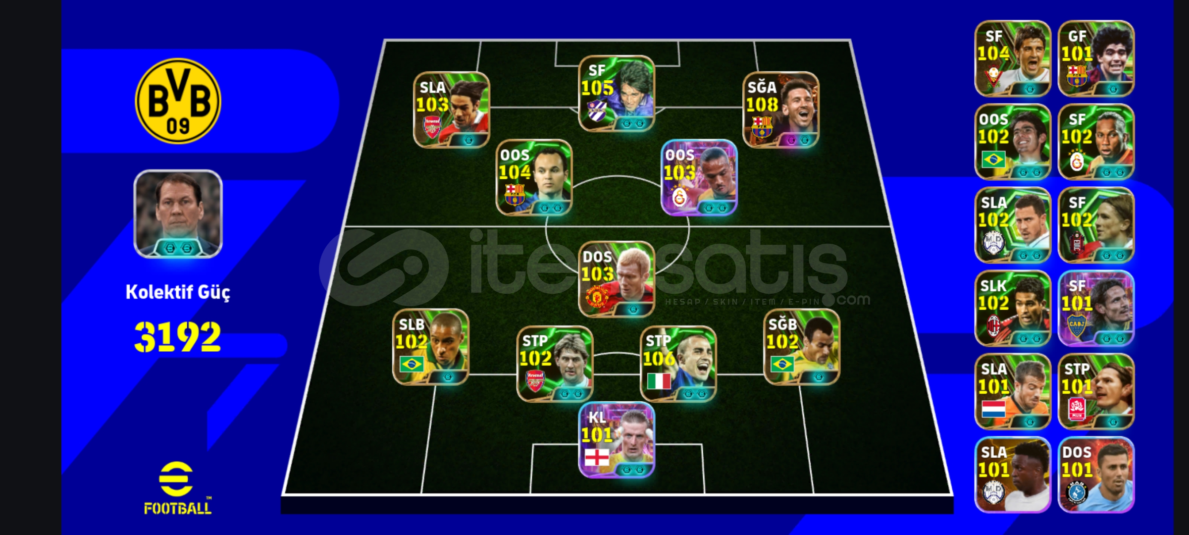 Arkadaşlar hesap göründüğü gibi tertemiz eksi MC yok ve çok uyguna108 Messi bombacı103 SANE bombacı104 iniestaHesap ile ilgili bir sorunuz varsa her zaman beklerim. Şimdide alıcısına hayırlı uğurlu olsun.❤️