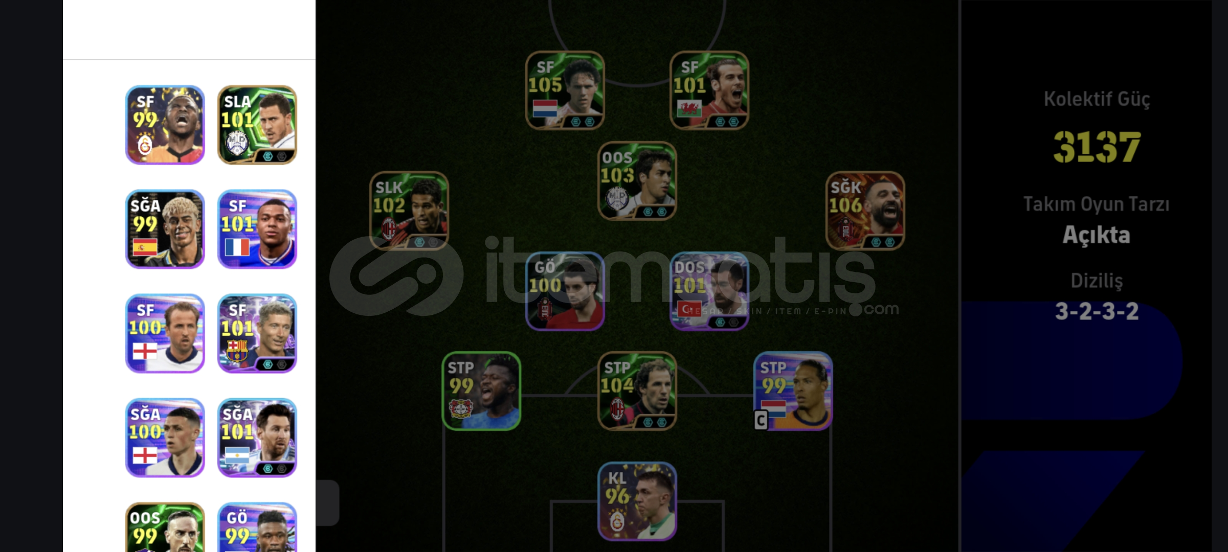 106 salah105 baresi105 Van basten 102 bombacı bale Serginho Levandowski GS kadro Süper hesap Tek bağ Max kg 3140 görür