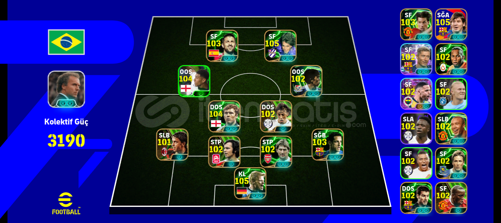 Bombacı Nakamu104 Bellingham103 David villa105 Oliver kahn104 scholes102 gutiTek bağHesabın içinde 1000 MC vardırPazarl...