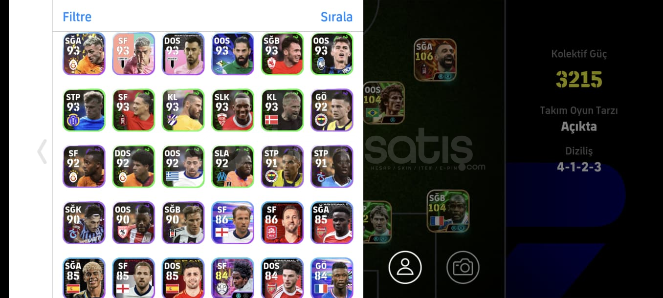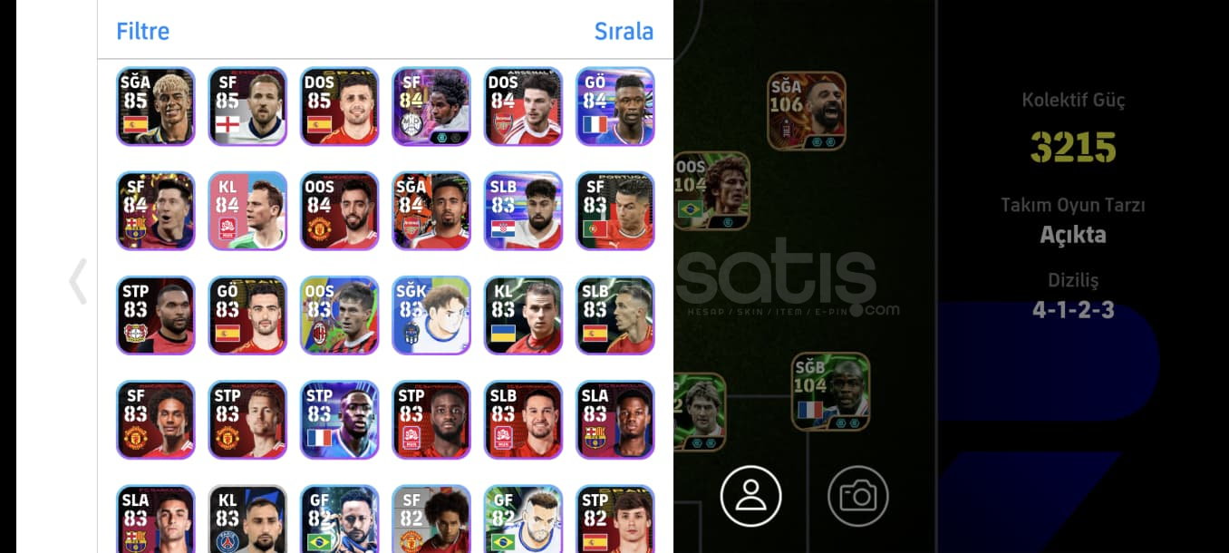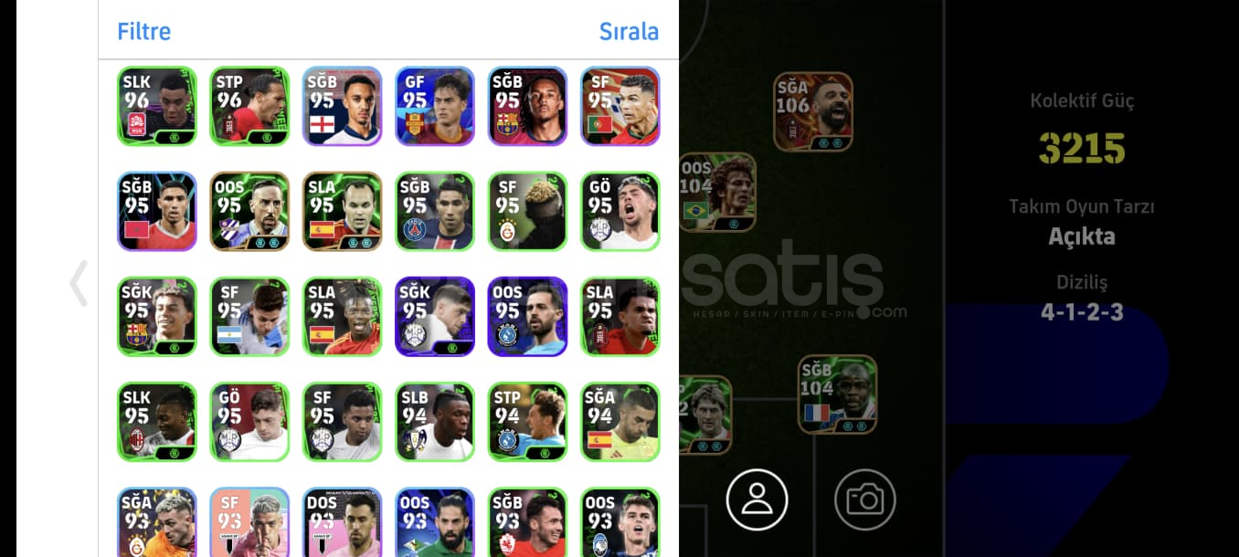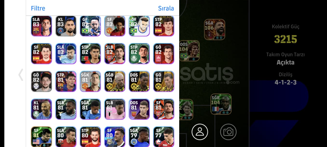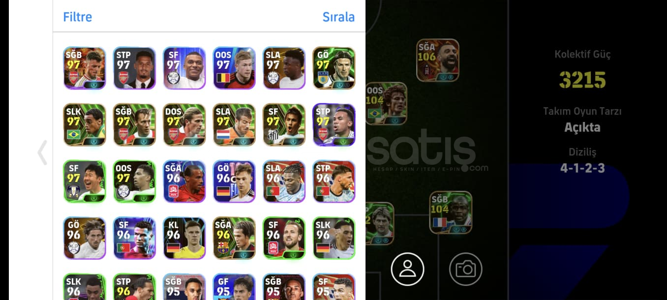 Hesap gördüğünüz gibidirTek bağdırRezervi güzeldir full potw kadro bile oluşmaktaOyunda ki en sağlam en iyi kartlar vardırCANLA BAŞLA BİTİRİŞ OYUNUN EN YÜKSEK SEVİYELİ KARTLARINDAN BİRİ 107 BALEDİNAMİK DEPAR 106 SALAHCANLA BAŞLA BİTİRİŞ OYUNUN EN İYİ SFLERİNDEN 105 SHEVCHENKOOYUNUN EN İİY ÖN LİBEROSU 105 VİERAYIKILMAZ ...