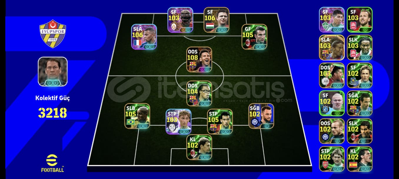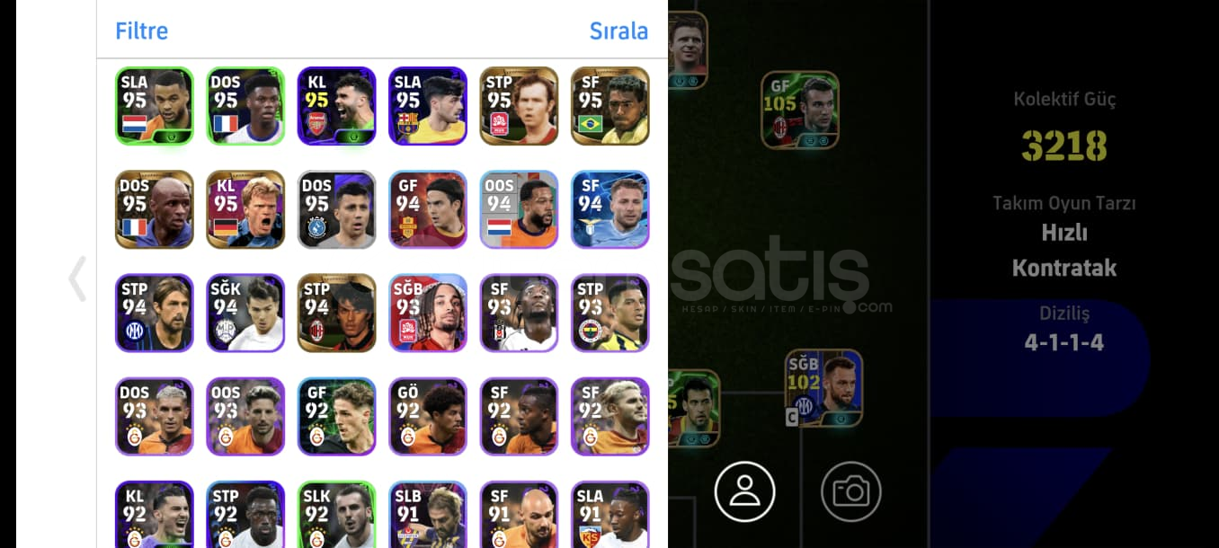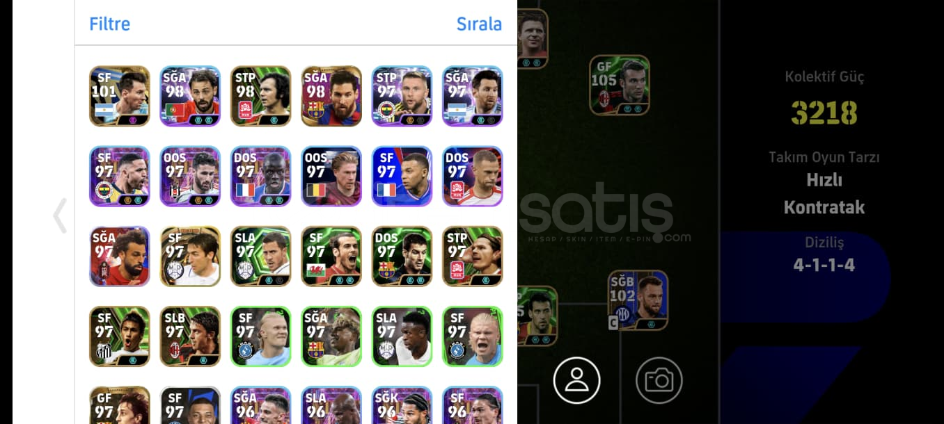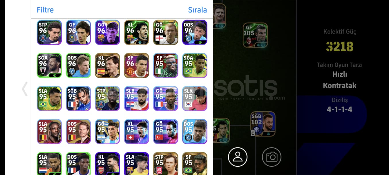 Hesap gördüğünüz gibidirTek bağdırRezervi doludur full süper lig ve full potw kadroları bile oluşabiliyor ayrıca eskiden kalma birçok aşırı nadir icon oyuncular bulunmaktadırÇok sağlam çok iyi oyunun en iyisi olan kartlar vardır6 adet özel menejer vardırBOMBA ŞUT 108 MESSİBOMBA ŞUT 106 MBAPPEBOMBA ŞUT RAFA SİLVABOMBA ŞUT YUNUS AKGÜNCANLA BAŞL...