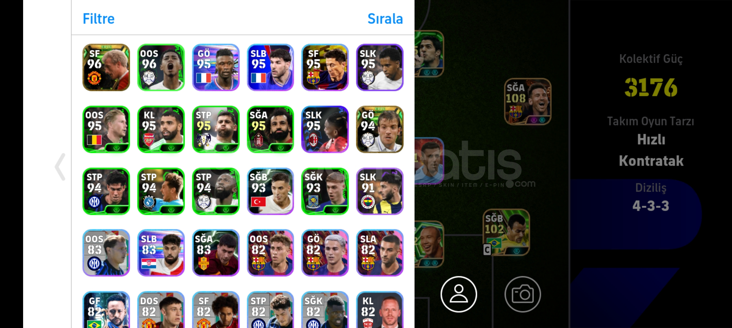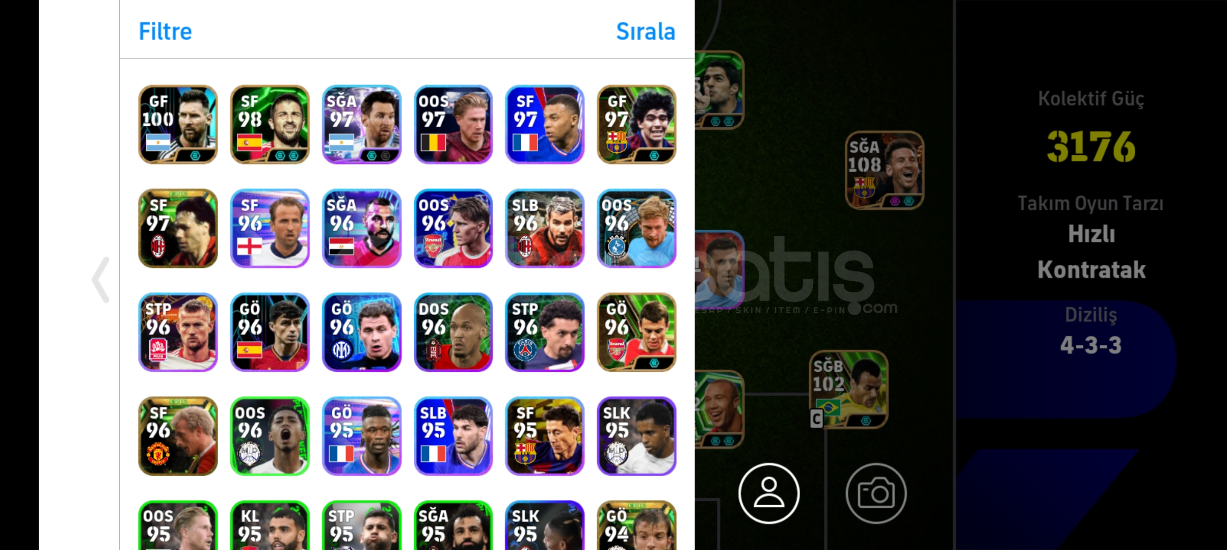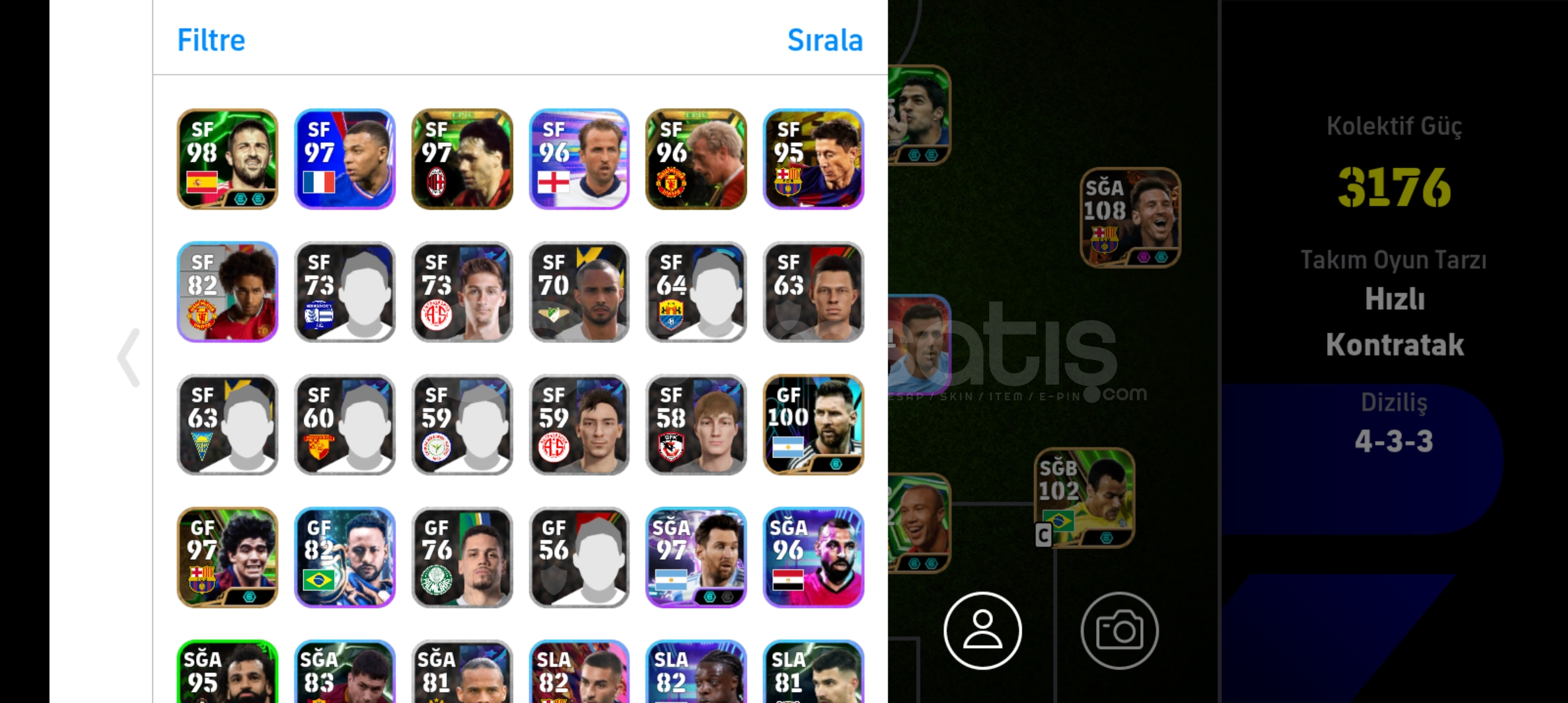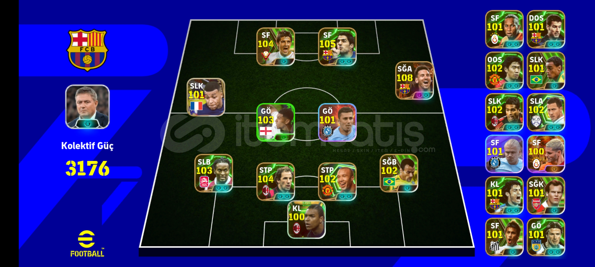 108 Messi 105 Suarez 100 dida 103 icardi 104 David villa vb.Ölü bağ