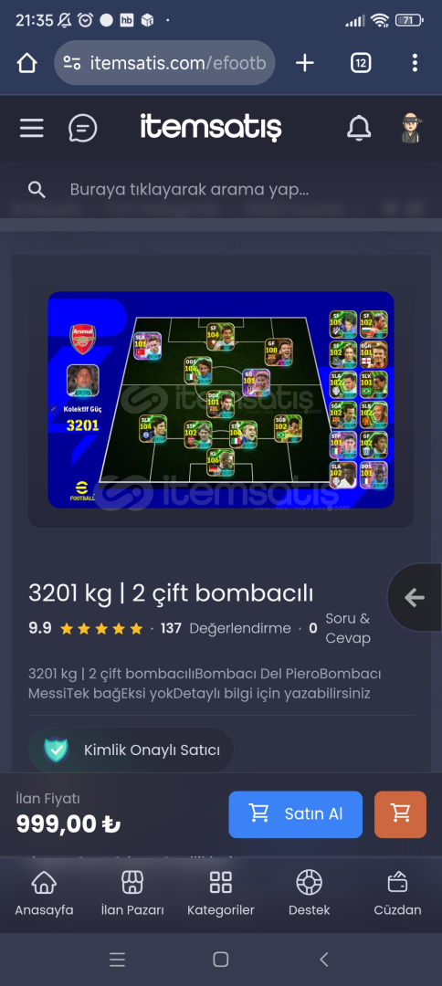 İtemSatış, satıcı hakkında Türk Ceza Kanunu kapsamında nitelikli dolandırıcılık başta olmak üzere ilgili suçlardan suç duyurusunda bulunma hakkını saklı tutar.